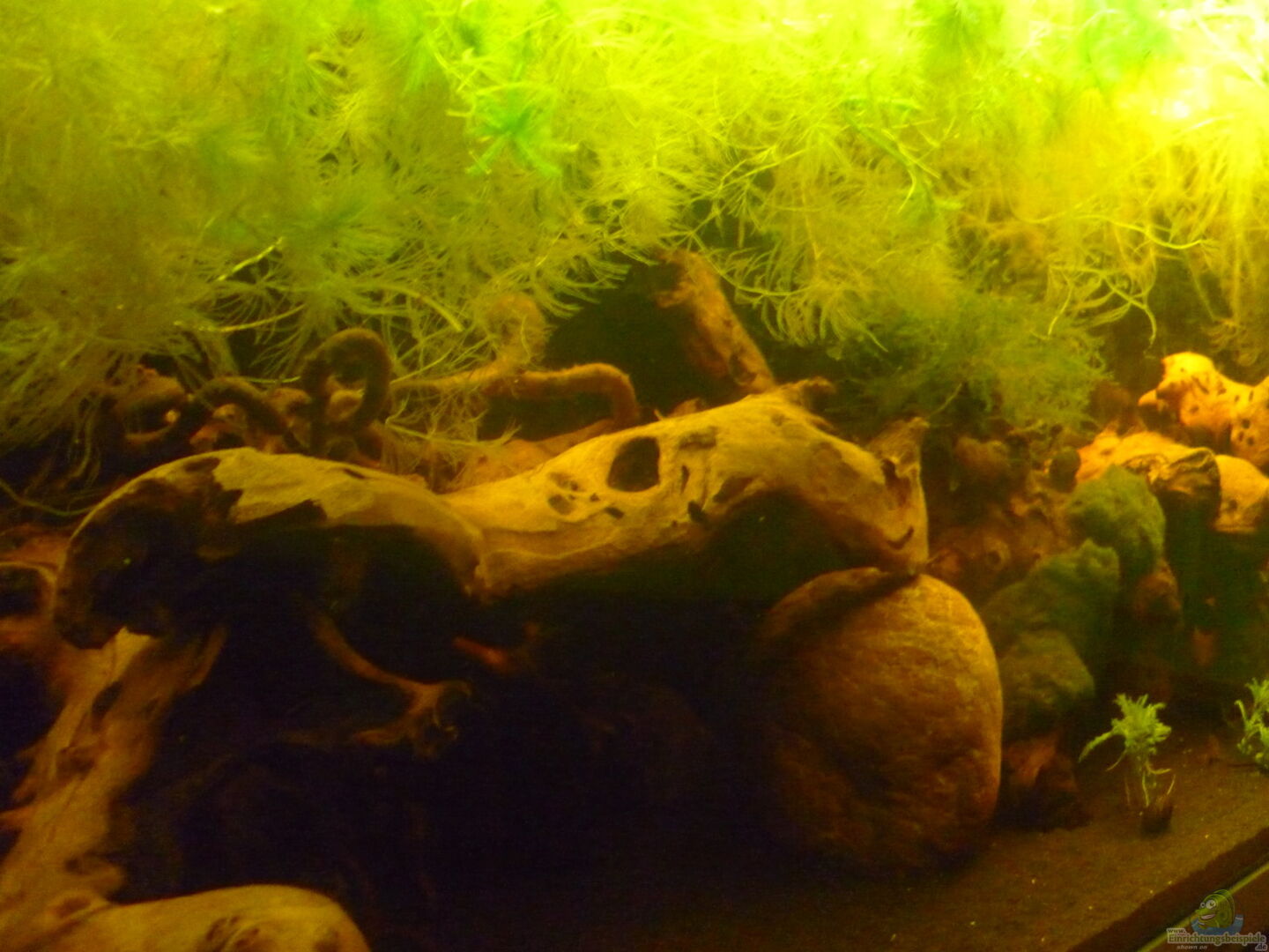 Aquariumrückwand wurde aus Styrodur und Acrylfarben gemacht und hinter der AQ Rückwand aufgestellt