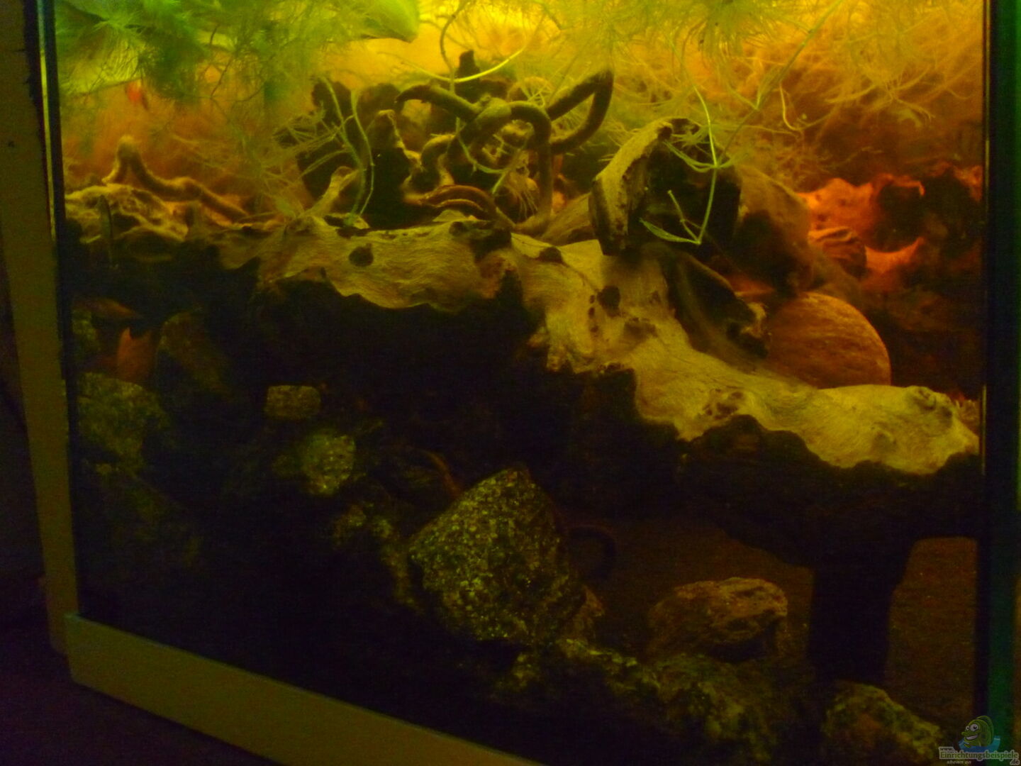 Aquariumrückwand wurde aus Styrodur und Acrylfarben gemacht und hinter der AQ Rückwand aufgestellt