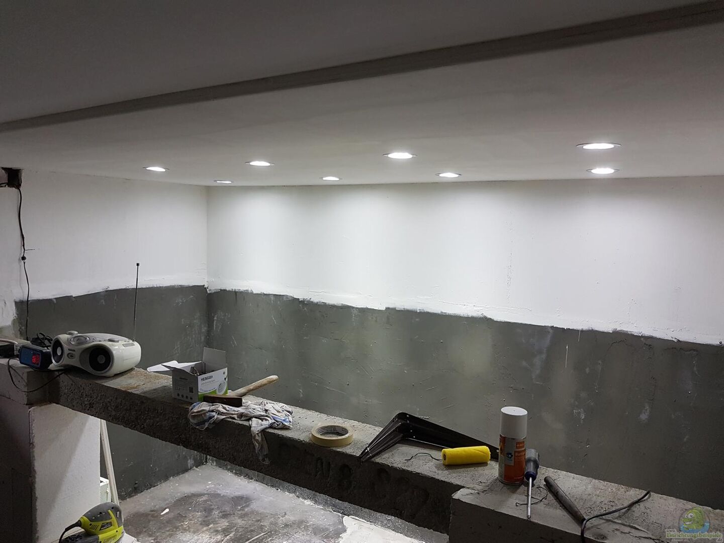 Betonaquarium mit Plexiglasscheibe 20 mm Scheibengröße 170x60 cm Sichtfläche ist 150x50 cm der Rest ist für die Verklebung verwendet worden Der gesamte Bau ist in Eigenleistung entstanden Das Becken ist nicht vollständig befüllt nur bis auf 100 cm da ich gerne wenn ich davor sitze die Oberflächenbepflanzung sehen möchte. Das Becken hat aktuell 3950 liter Wasser drin. Umbau 2020 von Teichfolie auf GFK Wanne Das Becken ist mit 47m2 Glasfasermatte und 24kg Harz ausgekleidet [...]