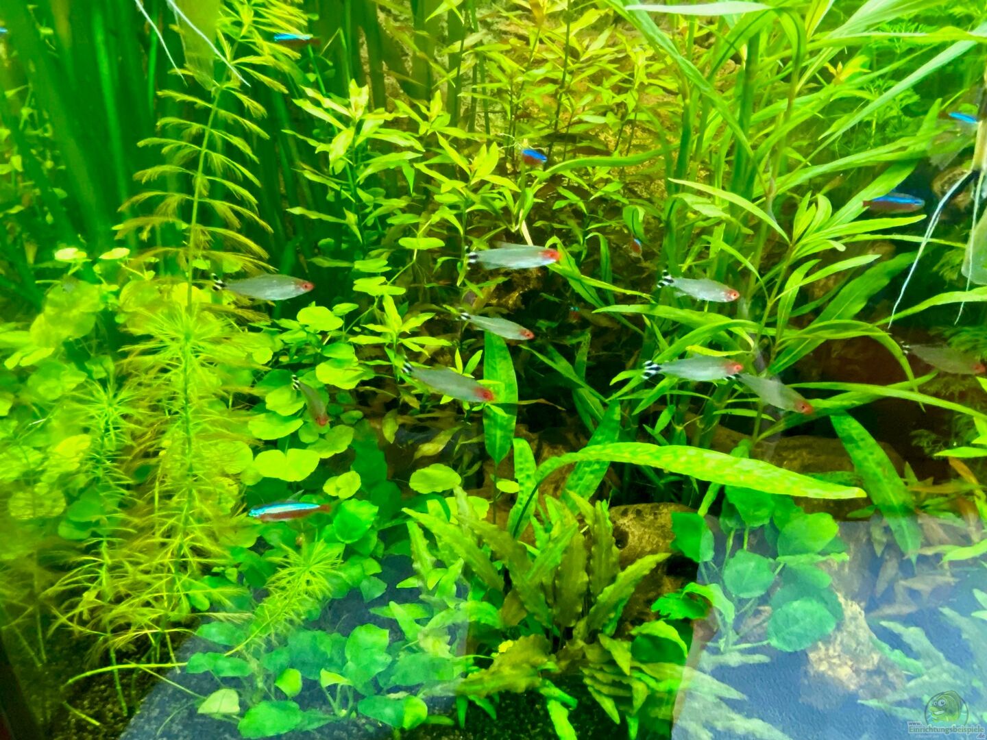 8 Paracheirodon axelrodi (Roter Neon) 7 Hemigrammus bleheri (Rotkopfsalmler) 5 Corydoras aeneus (Metallpanzerwelse) 1 Pärchen Apistogramma cacatuoides (Kakadu-Zwergbunbarsche) 1 Paar Hypancistrus sp. (Engelsharnischwels)