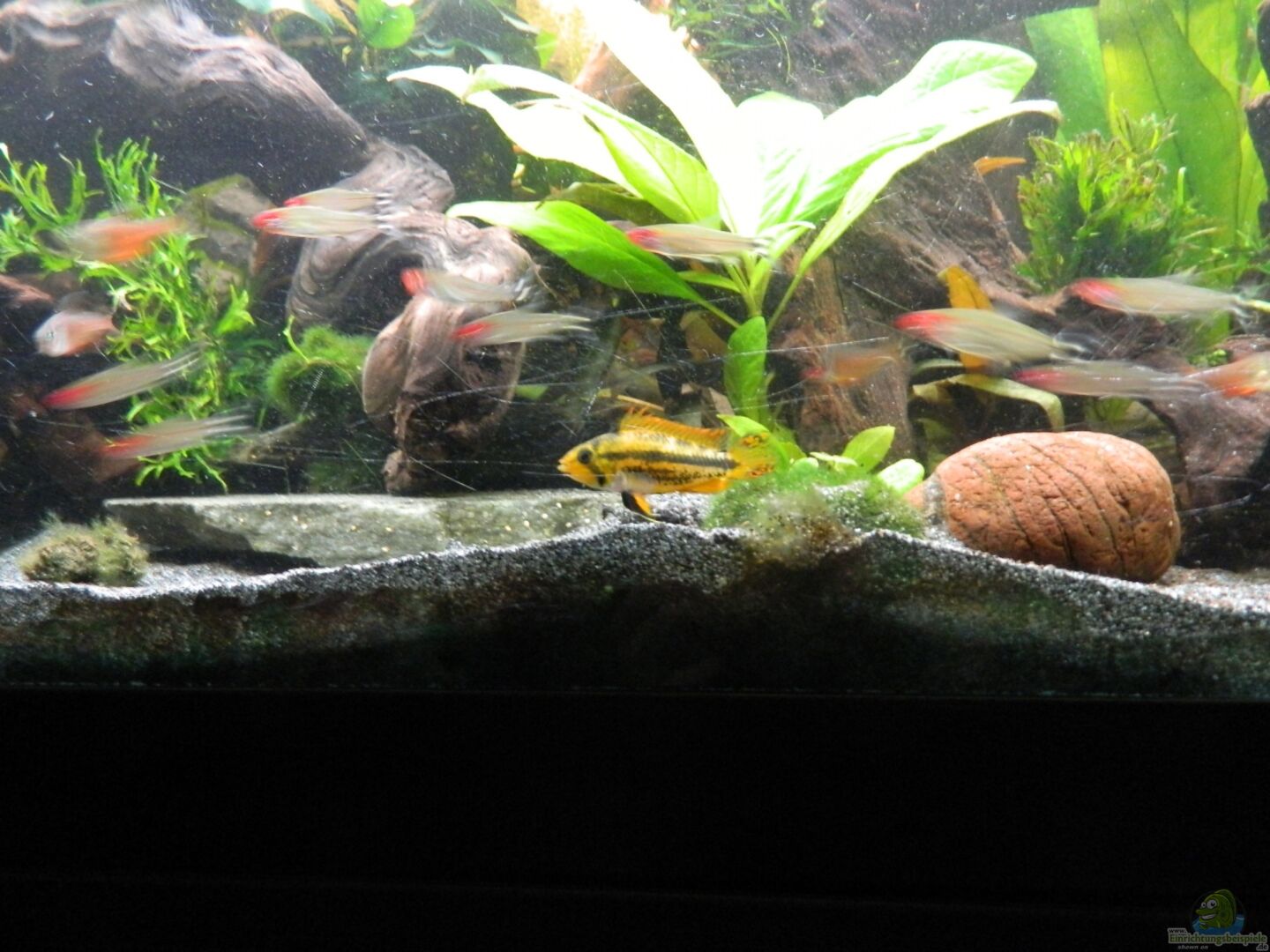 1/2 Apistogramma cacatuoides - Kakaduzwerbuntbarsch 1/2 Ancistrus sp. - Blauer Antennenwels 20 Hemmigrammus rhodostomus - Ahls Rotmaulsalmer 8 Hyphessobrycon flammeus - Roter von Rio (waren mal 10, zwei sind leider eine Woche nach dem Einsetzen verstorben) 10 Pangio myersi - Dornauge 3 Vittina coromandelnian - Zebrarennschnecke 2 Melanoides tuberculatus - Turmdeckelschnecke in Planung: Garnelen? Wei?? nur noch nicht genau welche. Tendiere momentan zu Amanos wegen der Grö??e, [...]