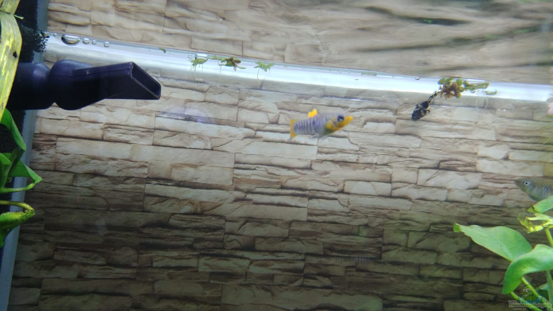 Mehrere Limia tridens, 4 Ozelotringelgrundeln, 5 Blaue Zwerggrundel, , 12 Längsstreifen Boraras, 5 Zwergstreifenschmerlen, 1 Hummelzwergwels und 4 Zwergdeltaflügelwelse