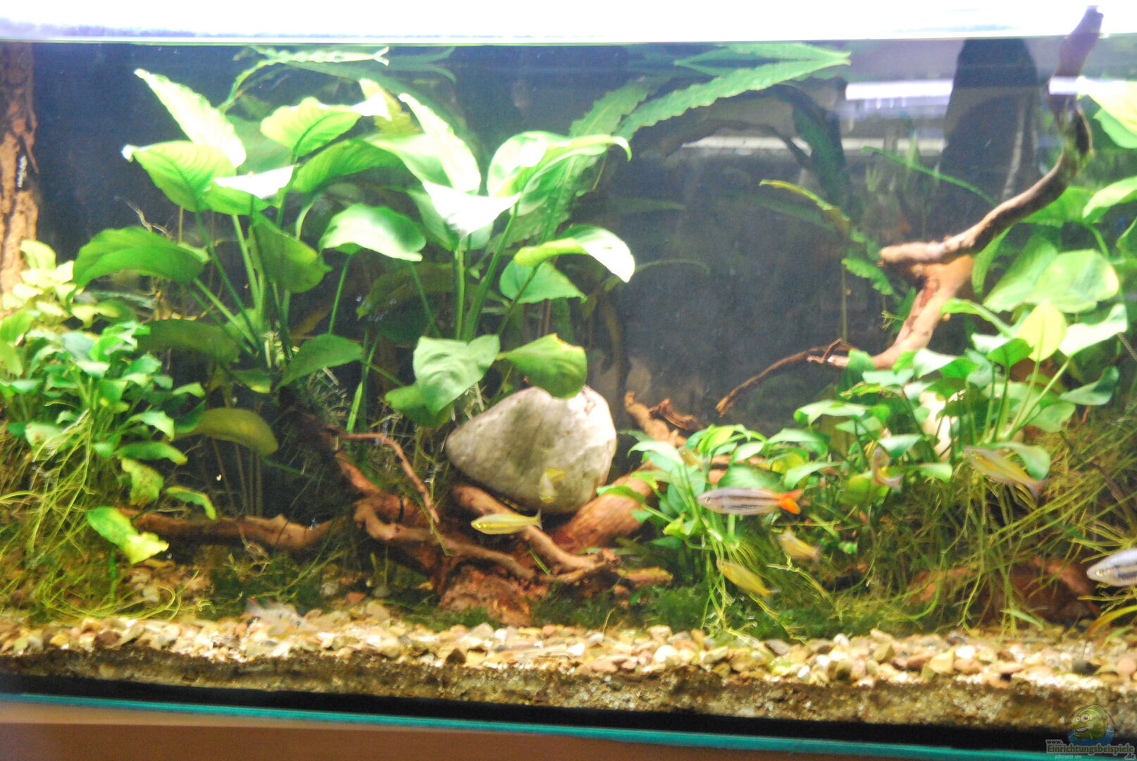 Gewölbte Frontscheibe, aber kein Juwel oder MP-Eheim Becken. Die Seiten sind 40 cm breit und zur Mitte hin werden es 50 cm. Mit Acrylglas Zuschnitten abgedeckt. Der Unterschrank besteht aus 2 mal Ikea TV-Board "Oppli" in Birkenholz Nachbildung.