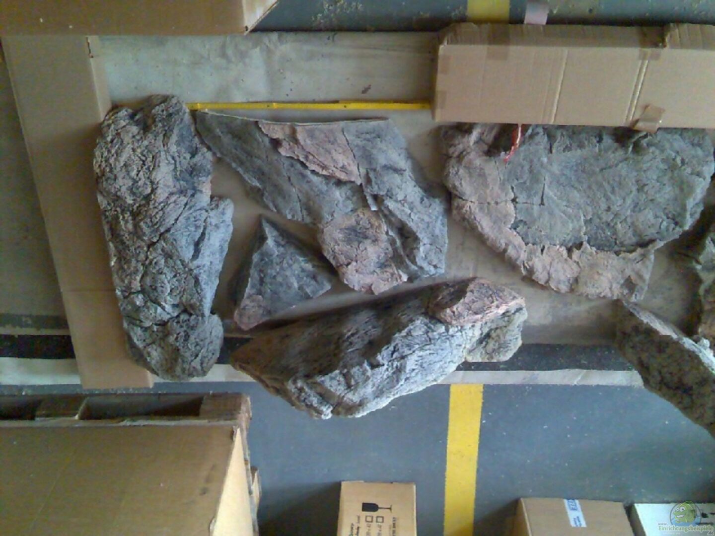 Rückwand und Bodengestaltung mit Back to Nature Modulen, diverse Moorkienwurzeln, Rückwand und linke Seitenwand von aussen schwarz gestrichen-gibt richtig viel Tiefe Kiesfolie unter dem normalen Kies, damit die gro??en Burschen mir die Bodenscheibe nicht freiwühlen können. (sieht immer blöde aus) Braucht man gar nicht zu verkleben denn die Folie mit Kies beklebt schwimmt nicht und liegt nahezu ohne Falten. Selbst die Module konnte man sehr gut nachschneiden.