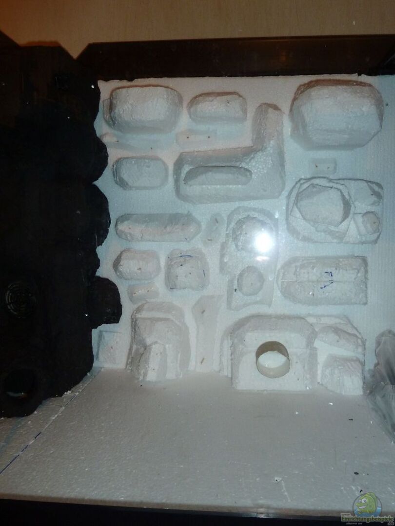 Eine selbstgebaute 3D-Rückwand ist im Becken installiert. In der Rückwand wurden Höhlen und Spalten eingearbeitet um die Bedürfnisse der zukünftigen Bewohner gerecht zu werden. Ein Teil der Steine habe ich auch selbst gemacht und mit Höhlen versehen. 25.12.2012 - Vom linken Teil der Rückwand wurde heute die grobe Stuktur fertig. Jetzt kommt die erste Schicht Zement drauf. 03.01.2013 - Zement an der linke und rechte Seite der Rückwand aufgetragen. Linke Seite [...]