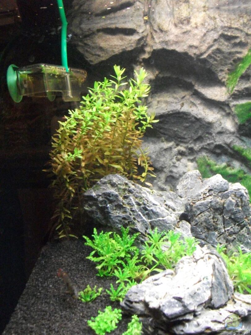 linke Seite mit Rotala rotundifolia und Pogostemon helferi zwischen den Steinen; von Romer (13)