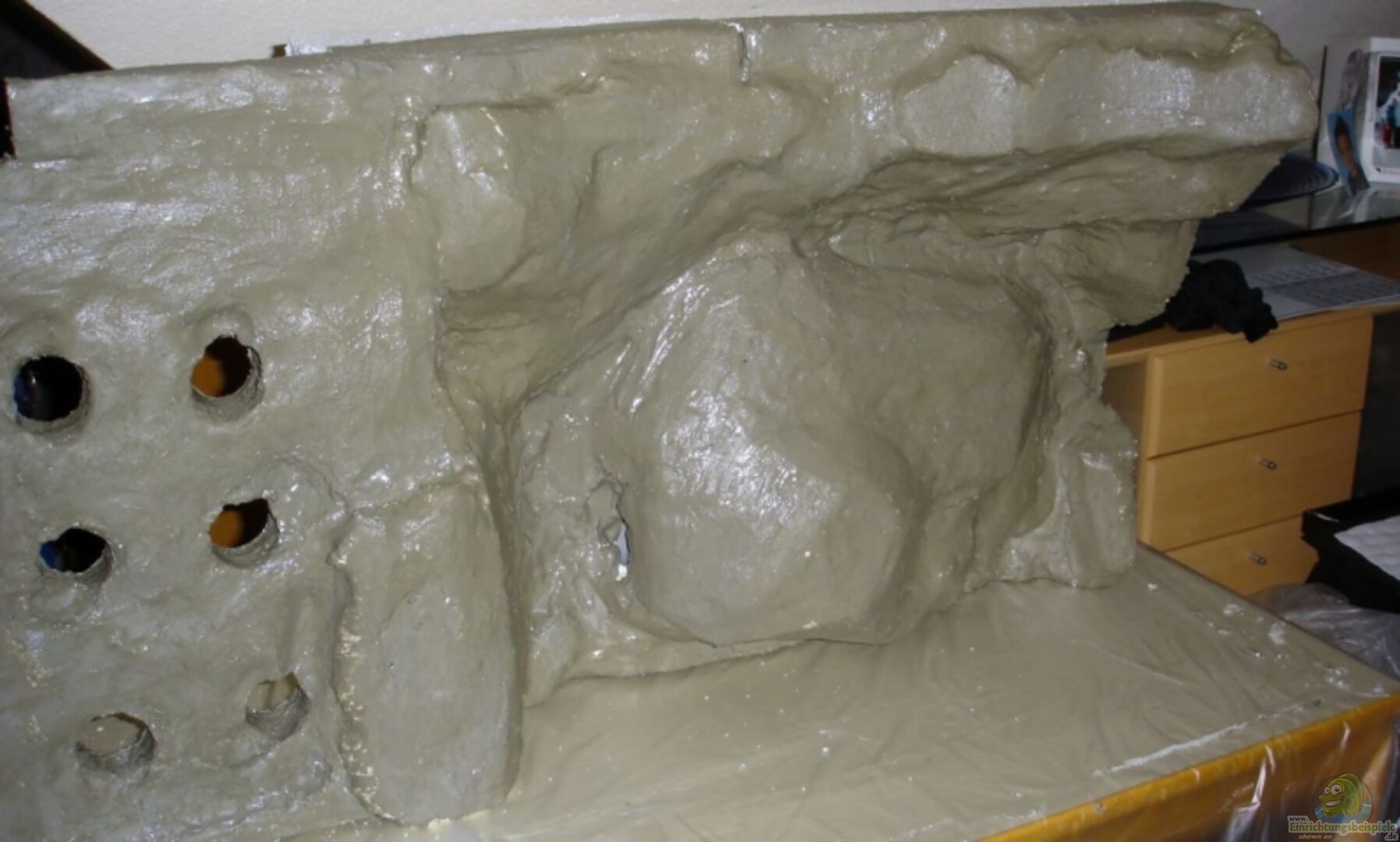 altes Lochgestein aus dem Malawi-Becken, schön mit Algen bewuchert.. Bau einer Rückwand: