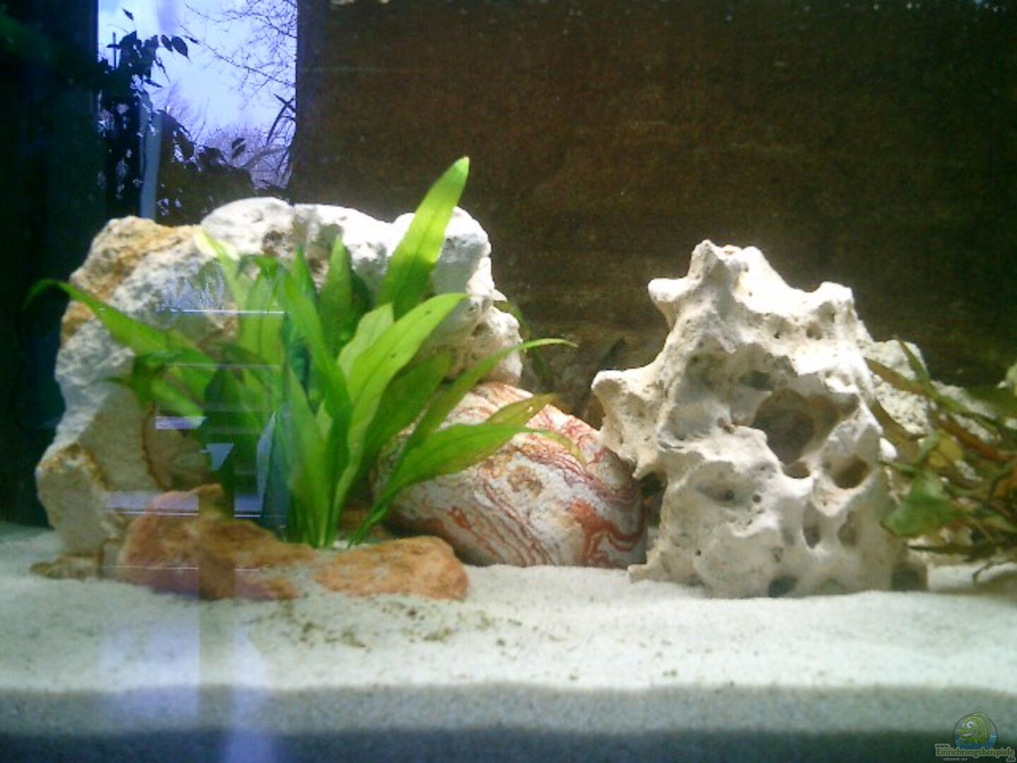 Ich habe eine Rückwand in Felswand-optik aus GFK eingesetzt (verklebt mit Aquariumsilikon). In die Rückwand wurden runde Möbelbelüftungsgitter eingesetzt um den Wasseraustausch zu gewährleisten. Die Rückwand ist für die Fische problemlos hinterschwimmbar.