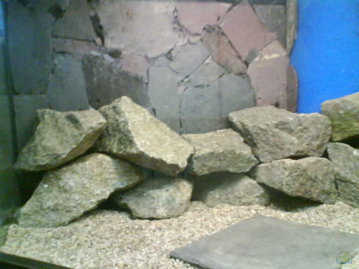 es wird wider dunkler Granit werden der gefällt mir sehr gut einmal vom Aussehen her un wegen der Farbe da kommen die Fische gut zur geltung - 150 kg werde wider sie Steine die über die Wasseroberfläche ragen mit Javamoos bepflanzen werde die Seitenscheiben mit mit kaputten schwarzen Plattenschiefer bekleben um eine schöne Rückwand zu bekommen