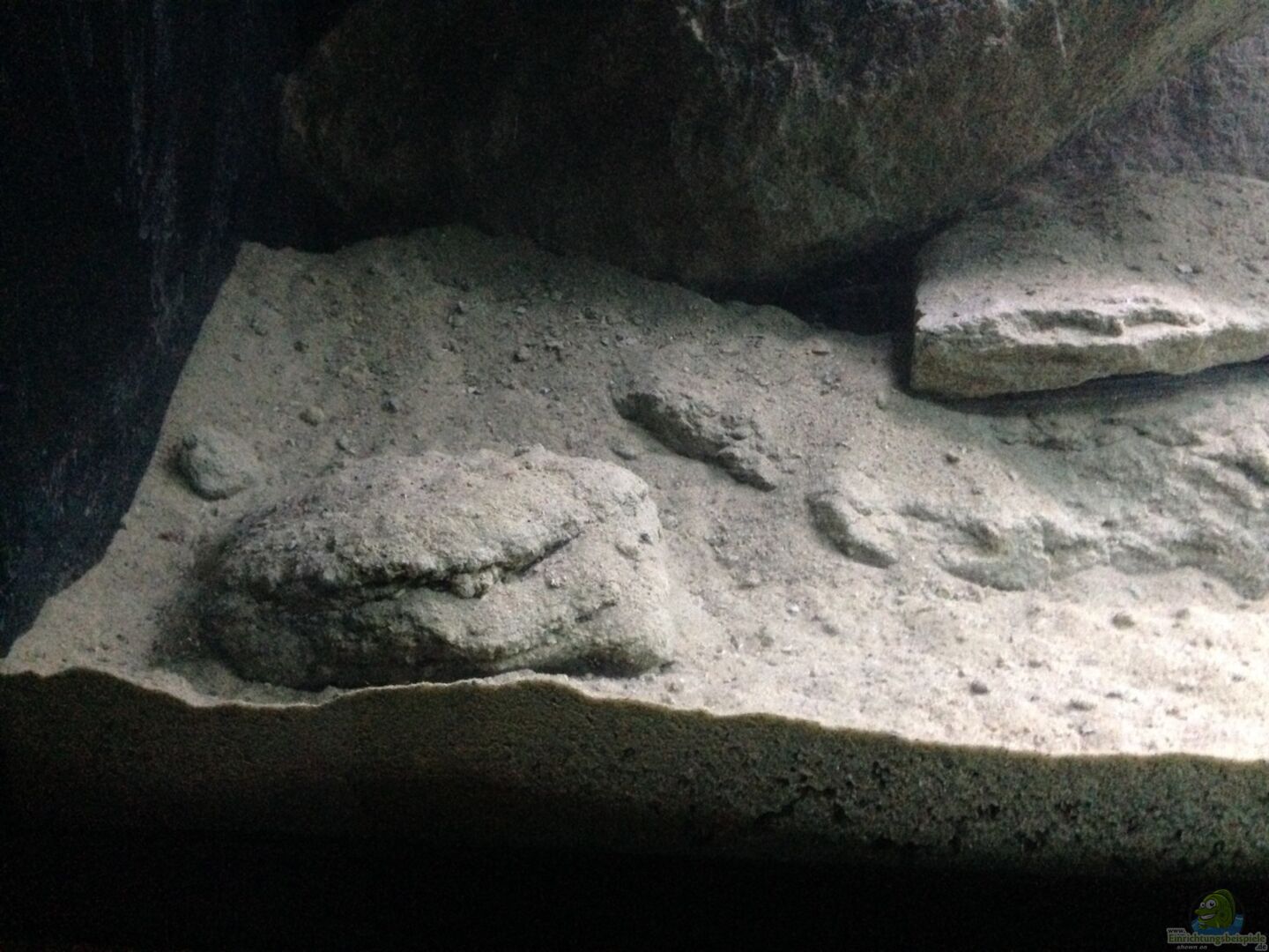 Das Becken wurde mit ca. 250kg Gestein aus Molasse von einem Steinwerk ausgestattet, was eine anschaulich, natürliche Umgebung, schafft. Dazu der gleichfarbige Sand, somit ein idealer ??bergang.