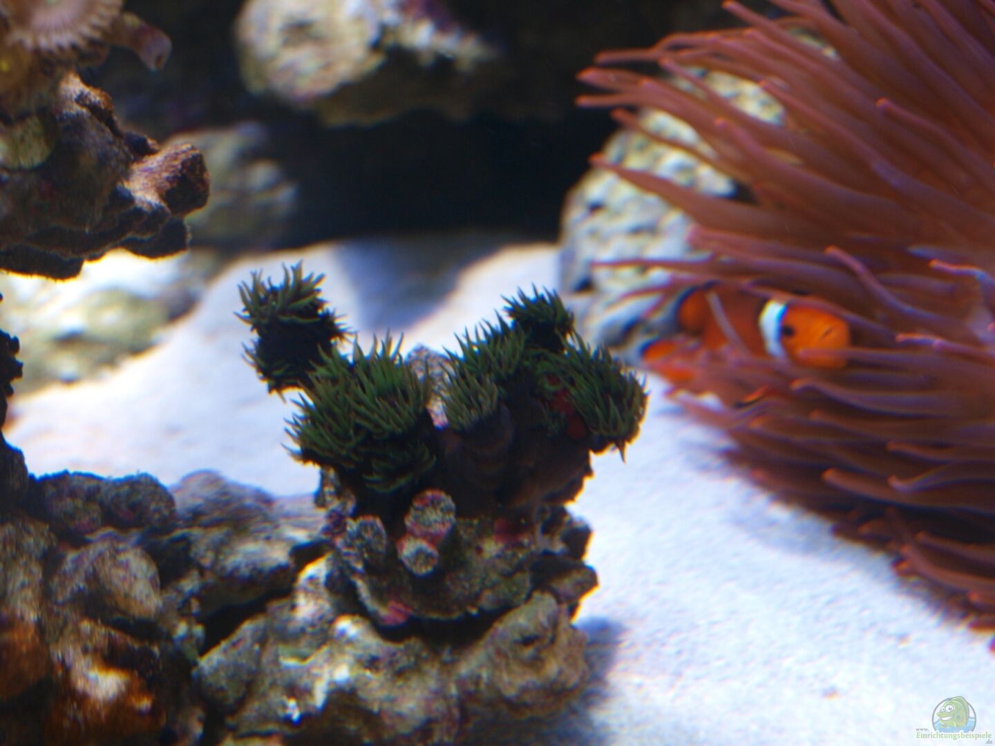 Korallen: Entacmaea quadricolor - Blasenanemone Parazoanthus sp. 01 - Gelbe Krustenanemone Protopalythoa - Krustenanemone 2 * Goniopora Tubastrea faulkneri - Orange-gelbe Kelchkoralle (tägliche Fütterung) Tubastrea sp. 01 - Kelchkoralle (schwarz; tägliche Fütterung) Funghia Seriatopora hystrix - Christusdorn-Koralle oder Stachelbuschkoralle Euphyllia paraancora - Hammerkoralle Pocillopora damicornis - Buschkoralle oder Himbeerkoralle Discosoma sp. 12 - Scheibenanemone, [...]