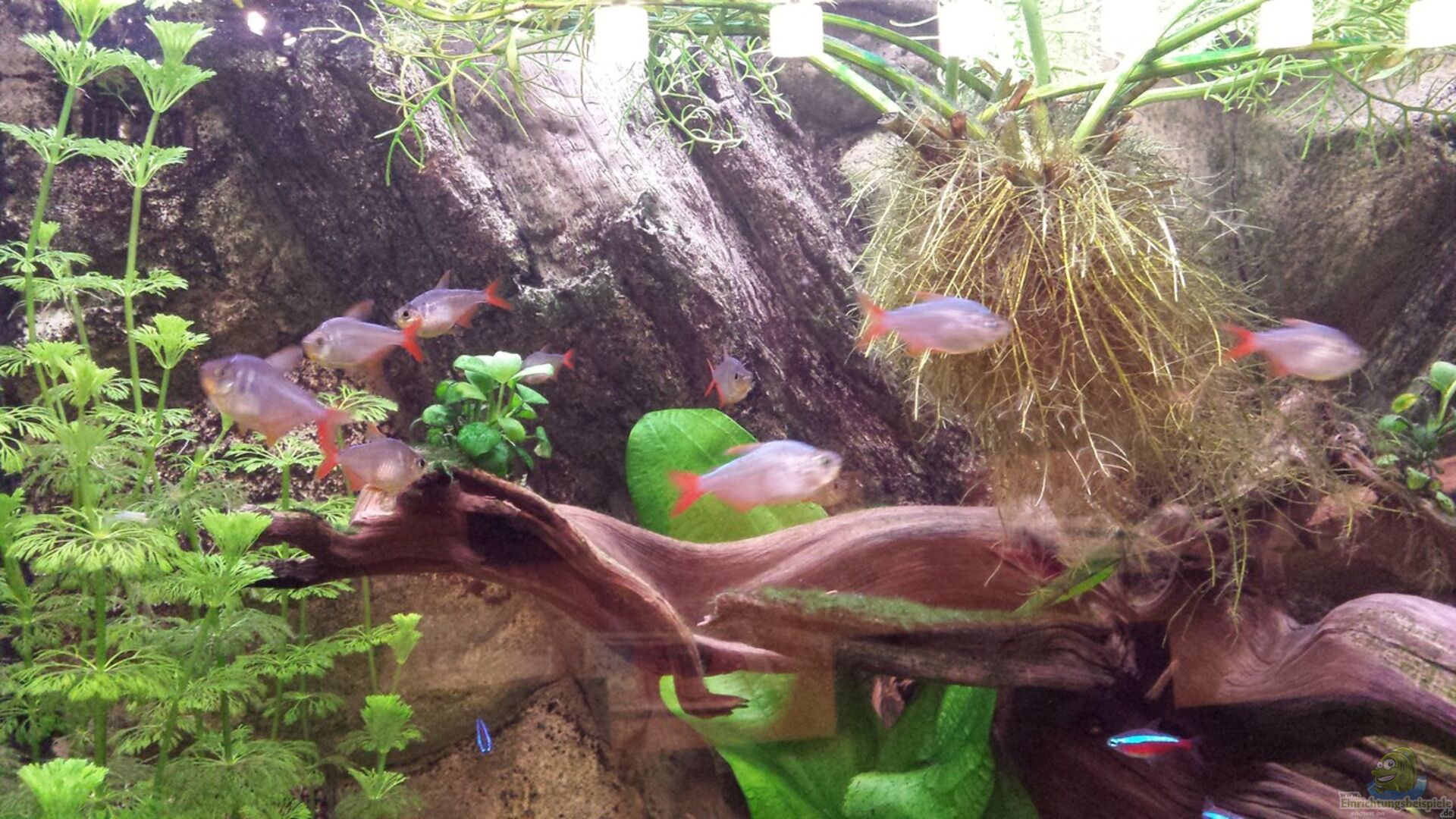 Echinodorus amazonicus Echinodorus bleheri Echinodorus tenellus Vallisneria gigantea Anubias b. v. nana Hygrophila polysperma Myriophyllum mattogrossense Hygrophila difformis Dünger: TetraPlant Crypto Tabs oder flüssig Die Pflanzen wachsen bestens, unterstützt von der CO2 Zugabe, welche ich direkt in den Wassereinlauf führe. Ich schneide jede Woche einen halben Eimer Vallisneria gigantea raus. Das Becken hat schon Blau- und Fadenalgen-Phasen durchlebt, deren Behandlung [...]