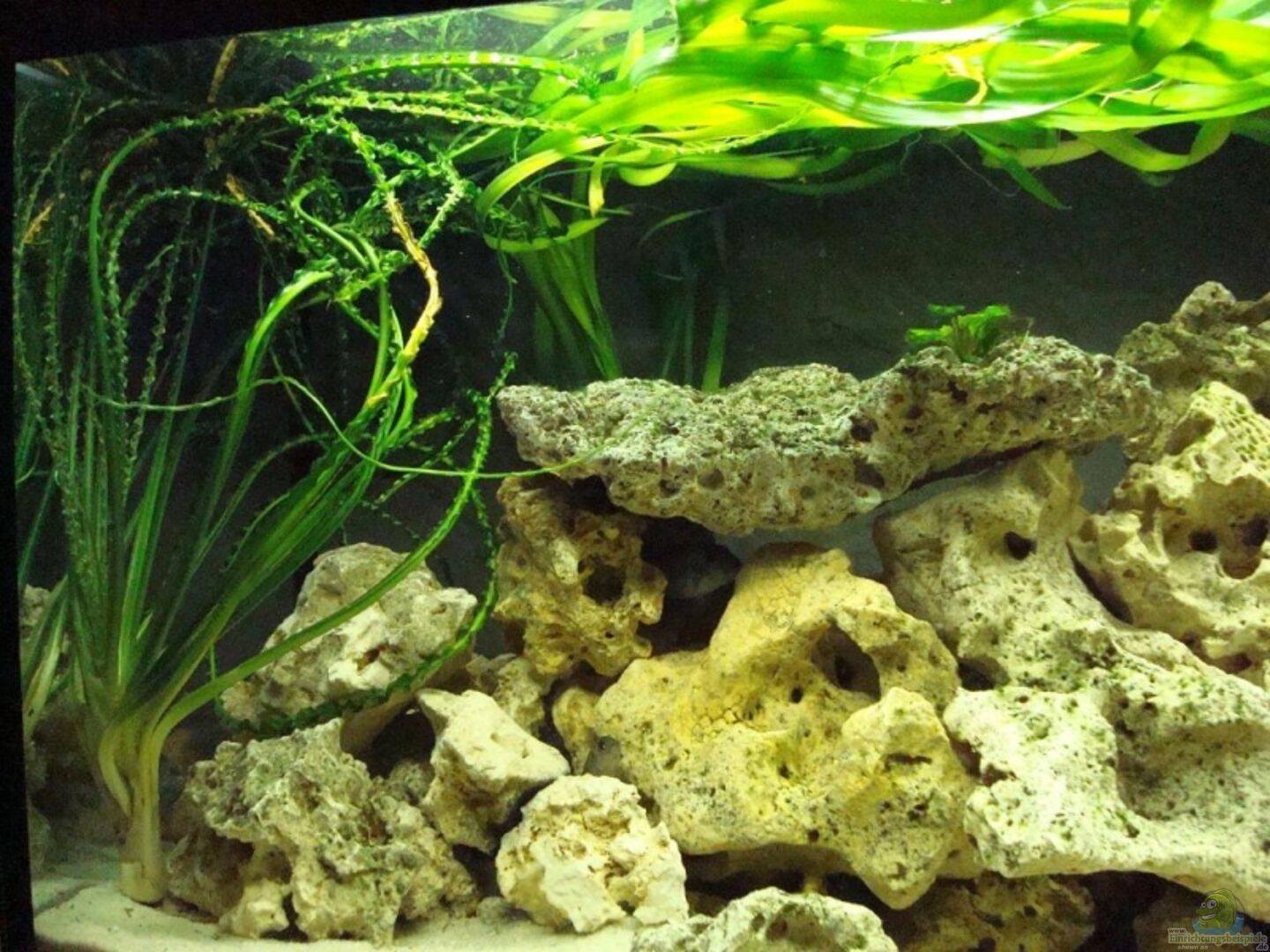 Als Rückwand habe ich zwei Kunststoffplatten mit Schifermuster im Aq. Au??erdem verwende ich ein spezielles Lichtleitersystem als Mondlicht, ich kann ich auch kleine Lichpunkte unterwasser erzeugen!