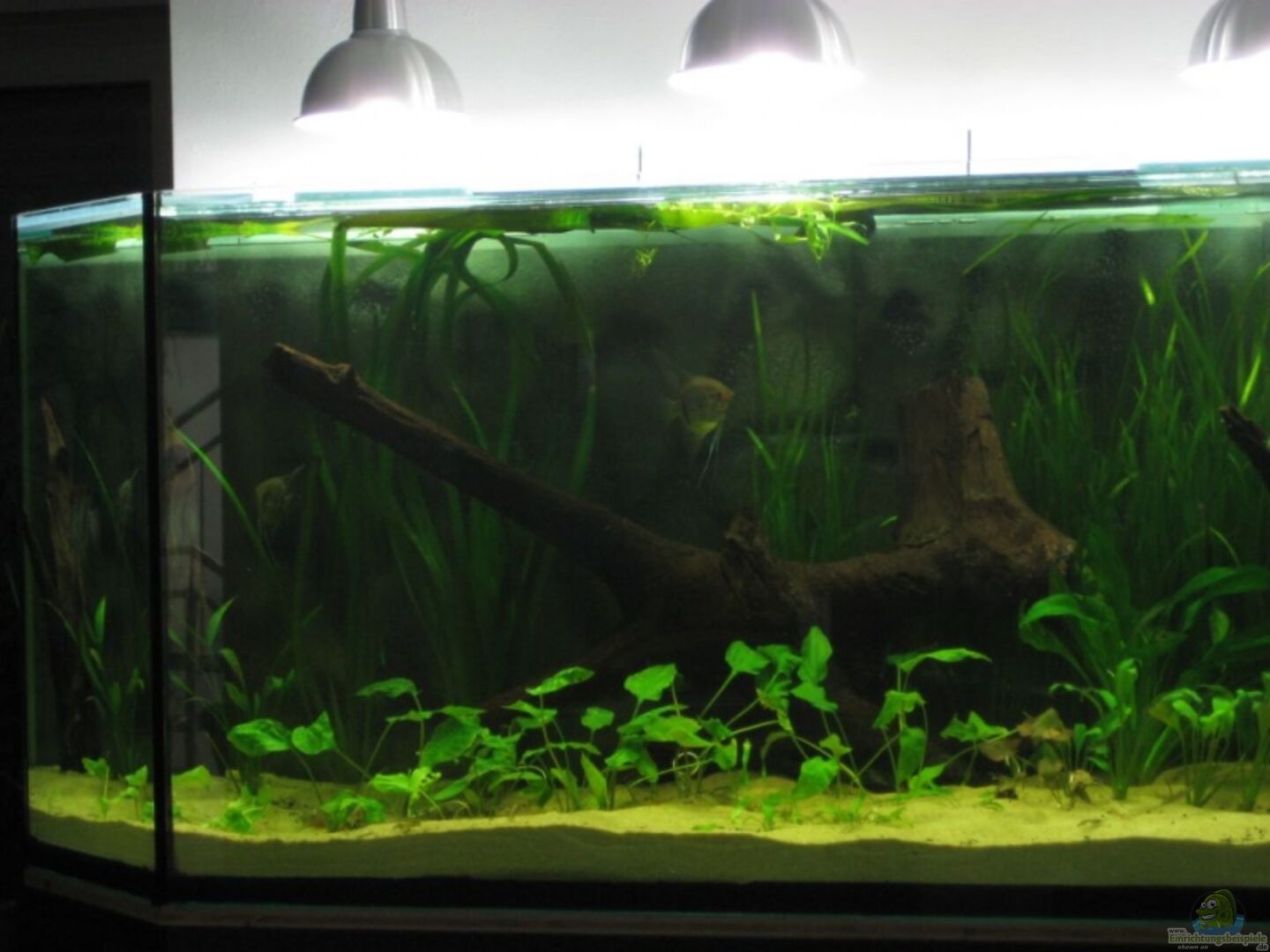 3 Bohrungen, Ablaufschacht (geräuschlos), 20er VSG-Glas, umlaufender Glasstreifen am Boden, Bodenplatte 2-fach geteilt. Volumen ist incl Filterbecken! Wasserwechsel erfolgt über einen Ablauf. Rückwand aus 5cm Styropor, mit Hei??luftfön strukturiert und mit schwarzem Lack besprüht, dient gleichzeitig als Wärmedämmung. Das ganze steht auf einem Stahlgestell, vom Küchenbauer verkleidet.