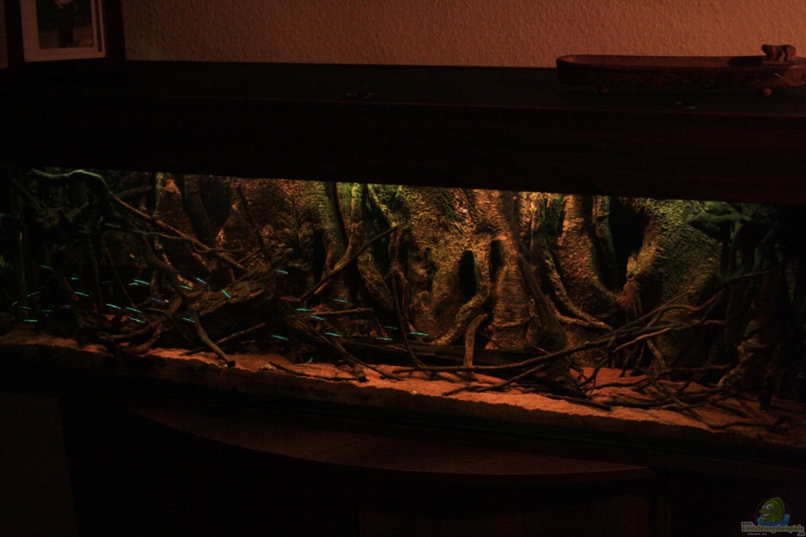 Das Becken Das Becken ist ein Sonderma??, die den besonderen Bedürfnissen der "Roten Neons" hervorhebt. Eine Anfertigung des Aquarienbauers ( www.tromsa.de ). Das Becken ist in der Ausführung mit 12 mm Glas in Weissglas hergestellt und Kanten sowie Stoss verklebt. Darüber hinaus steht das Becken auf einer Isoliermatte, um Unebenheiten auszugleichen. Die Abdeckung ist eine Sonderanfertigung von FRIEDEBERG AQUARIEN TECHNIK. Die Abdeckung ist Dunkelbraun und [...]