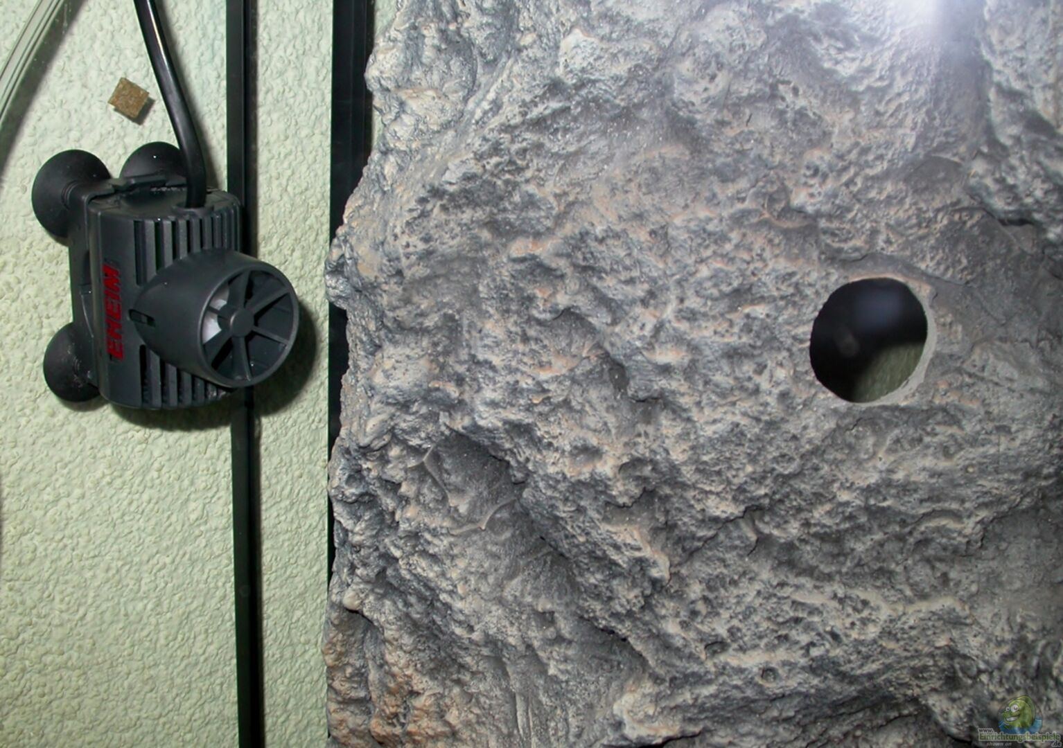 Strömungspumpe: Eheim streamON 1800 - 2, 8 W - 1800 l/h von 10:00 bis 20:00 Uhr Luftpumpe: Eheim air pump 200 - 3, 5 W - 2 Ausströmer 2x Tetra CV 4 Rückschlagventil Die Ausströmer wurden in zwei Bereichen hinter der Rückwand angebracht, in denen wenig Wasserbewegung herrscht und soll auch eine Kahmhautbildung verhindern. Laufzeit morgens und abends jeweils 1/4 h. Wasserwechselpumpe: hydor - 4, 5 W - 250 l/h (dient mehr oder weniger nur zum "Ansaugen", [...]