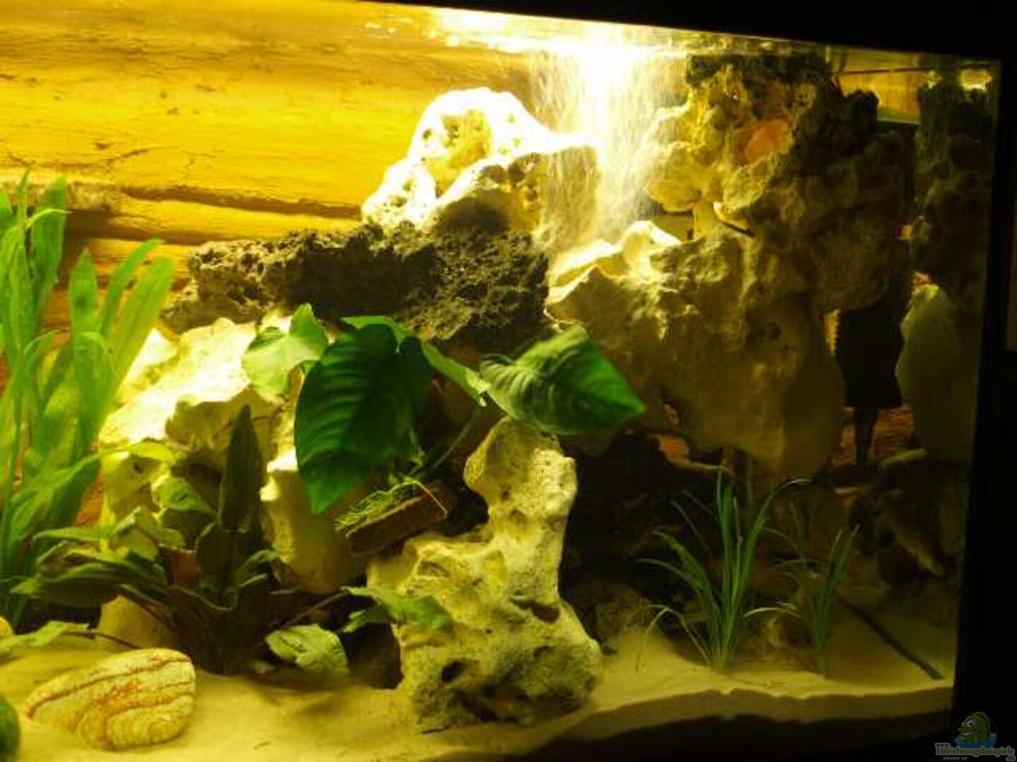 Ich habe mir eine Seiten- und Rückwand selbst gebaut! Sie bestehen beide aus Styropor, jeweils 50mm stark. Diese wurden mit einem Lötkolben und einem Hei??luftuföhn bearbeitet, um den Wänden Struktur zu verleihen. Nachdem die Struktur geformt war, habe ich Sandsteinplatten in die Wände eingearbeitet, dann die Wände mit Portlandzement überzogen und im letzten Arbeitsgang, aus Portlandzement und Abtönfarbe eine Schlämme erstellt und aufgetragen. Ich habe ausserdem in die Rückwand eine Aussparung [...]