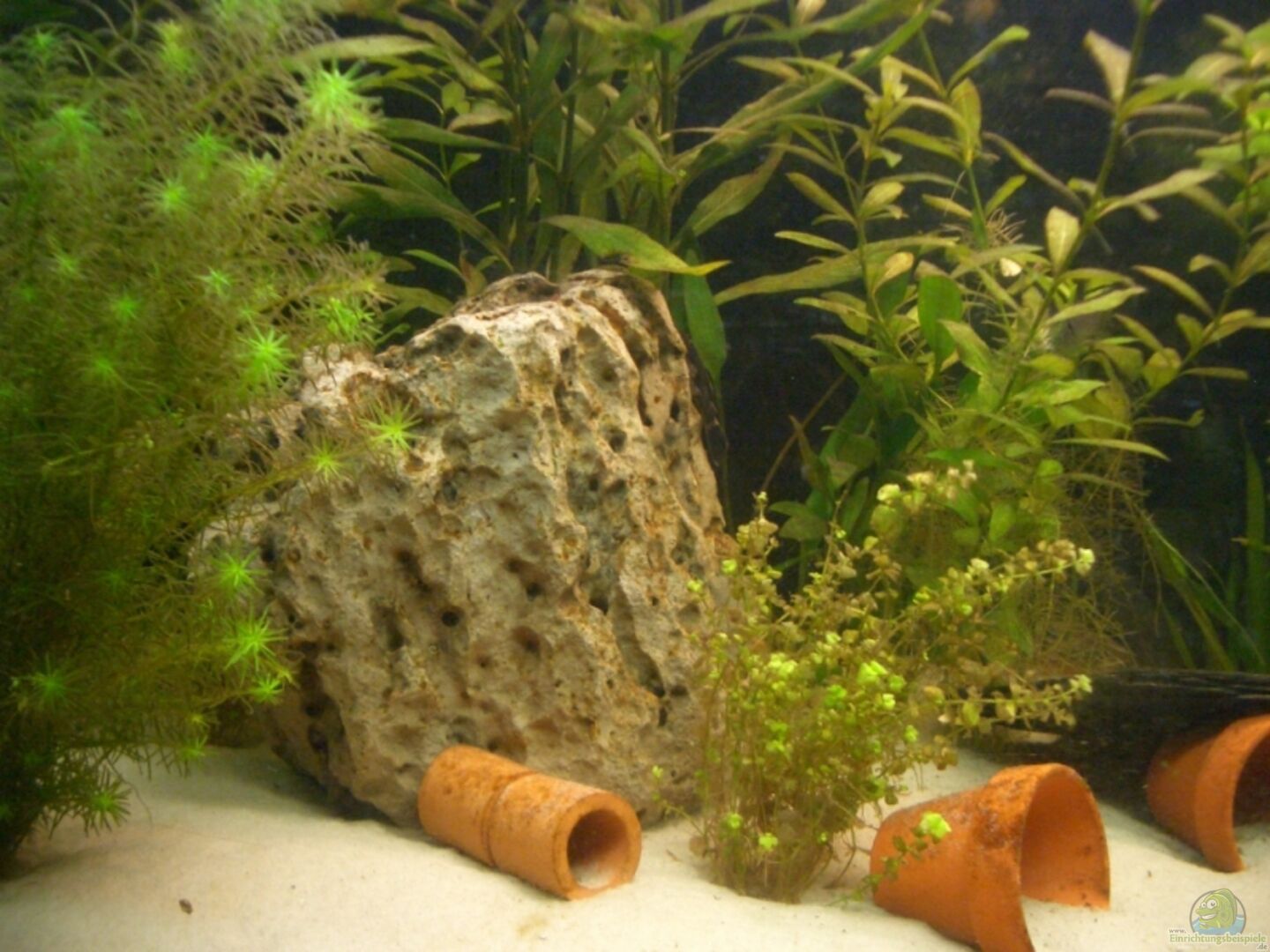 1 gro??e Wurzel 1 Lochstein 4 kleine Tontöpfe 3 kleine Tonröhren 1 Schieferplatte (schräg über 2 Tontöpfen)