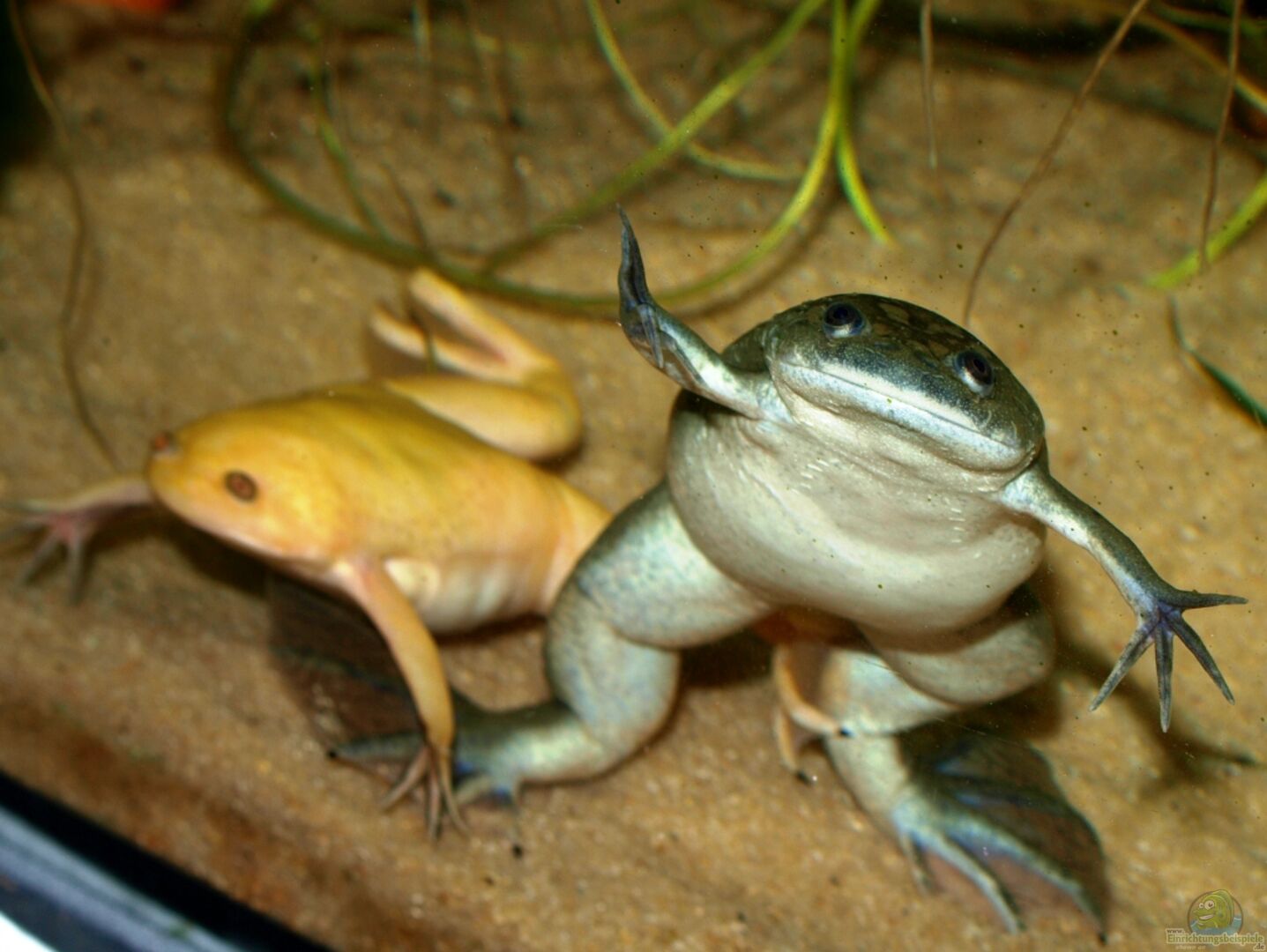 1.3 Xenopus laevis. Der aus Südafrika stammende Glatte Krallenfrosch (Anura: Pipidae) erreicht eine Kopf-Rumpf-Länge von ca. 6-8 (10) cm (Männchen) bzw. 8-12 (15) cm (Weibchen). Er besiedelt in der Natur verschiedenste stehende und langsam flie??ende Gewässertypen, meist mit feinem Bodengrund, und gilt bezüglich der Wasserwerte als äu??erst anpassungsfähig. Die Tiere leben vollständig aquatil, können aber bei günstiger Witterung kurze Strecken über Land zurücklegen; in der Wohnung [...]