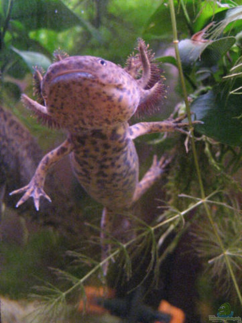Stand aktuell: 2 Antennenwelse (braun m, Albino w) 3 w + 1 m (Albino) Axolotl ca. 2 Jahr alt 2 m (Albino) Axolotl ca. 3 Jahre alt 2 Goldfische ...Guppys (ursprünglich als ´Futterproduzenten´ im Becken gedacht - funktioniert allerdings im Becken nicht - sind einfach zu lecker)