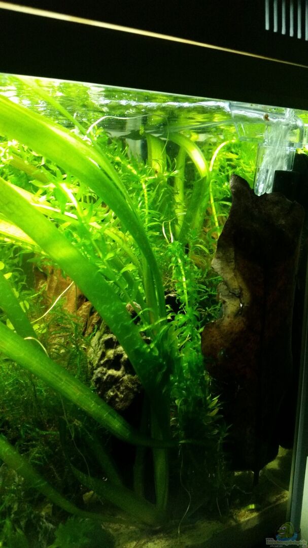 Keine weitere Technik vorhanden / notwendig! Wöchentlicher Wasserwechsel (etwa 12 Liter) entspricht ca. 50% Für die Pflanzen sind Sera Florenette "A" in viertel zerbrochen an den Wurzeln. Wasser wird nur mit Easylife aufbereitet und durch die Kalk-Steine etwas aufgehärtet.