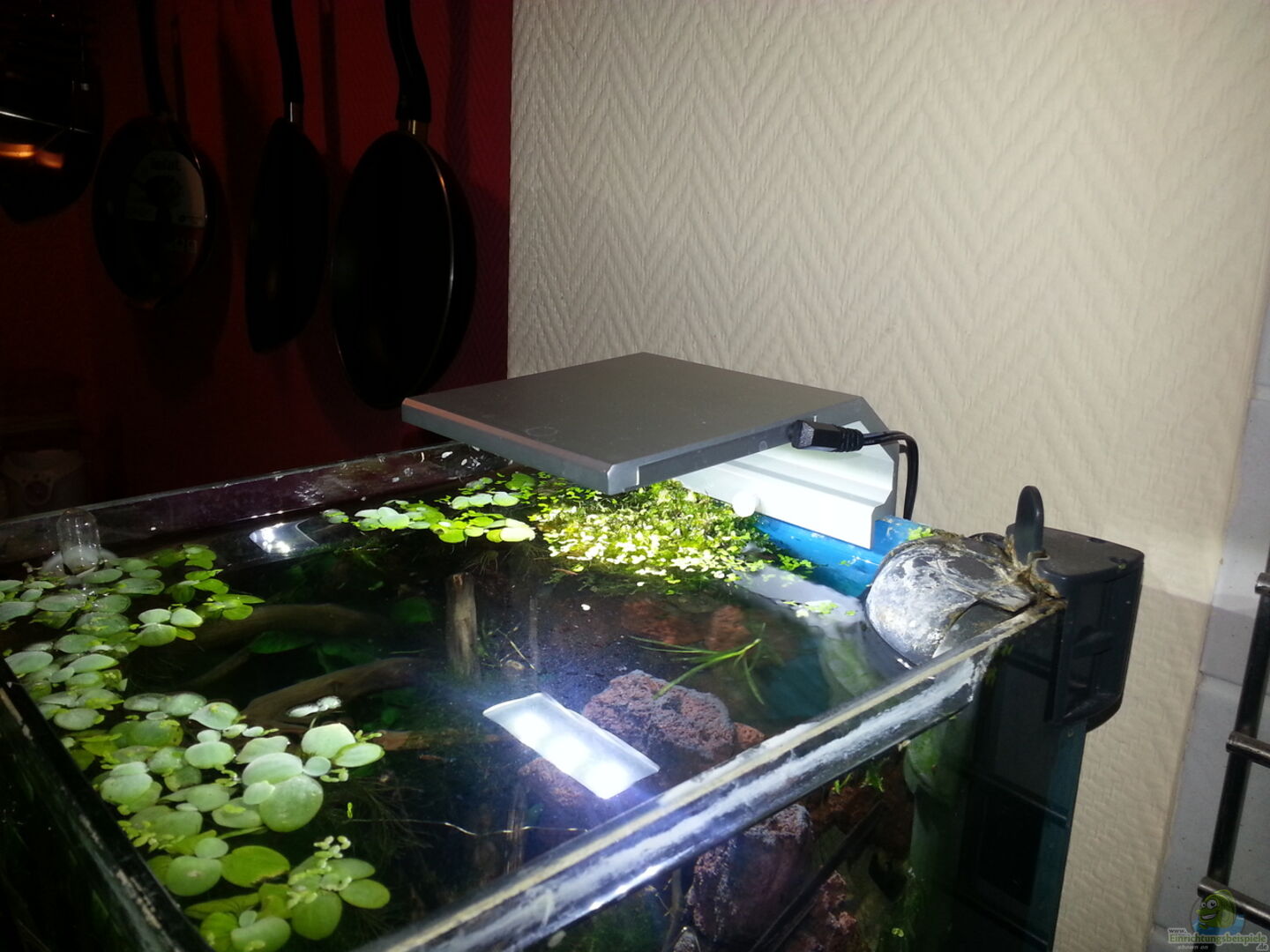 Thermometer Bio Co2 Anlage gebaut aus einer Plastikflasche, die mit einer CO 2 Diffusor-Pfeife verbunden ist. Der Schlauch ist mit einem Rückschlagventig gegen einlaufendes Wasser gesichert. keine weitere Technik