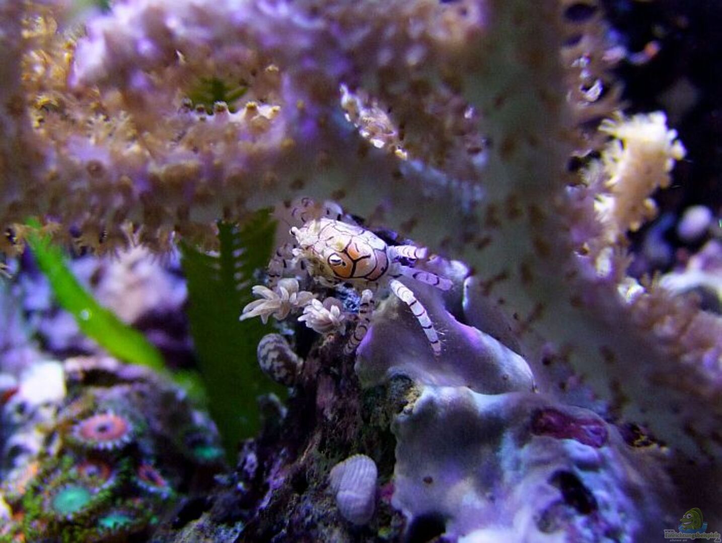 Korallen: * Zoanthus sp., unterschiedliche Färbungen. Erst nach dem zweiten Versuch klappte das Einbringen! Beim ersten mal wunderte ich mich, dass die Polypen nach und nach verschwanden... bis ich eine Heliacos-Schnecke absammelte und vor allem die dunkelgrauen Asterinas mehrfach beim gemütlichen Mampfen erwischte. Ich war mir nicht sicher, ob die kleinen Seesternchen nicht einfach nur die Gunst der Stunde nutzten und das Werk der Schnecke vollendeten- sprich, nur an bereits angeschlagenen Polypen [...]