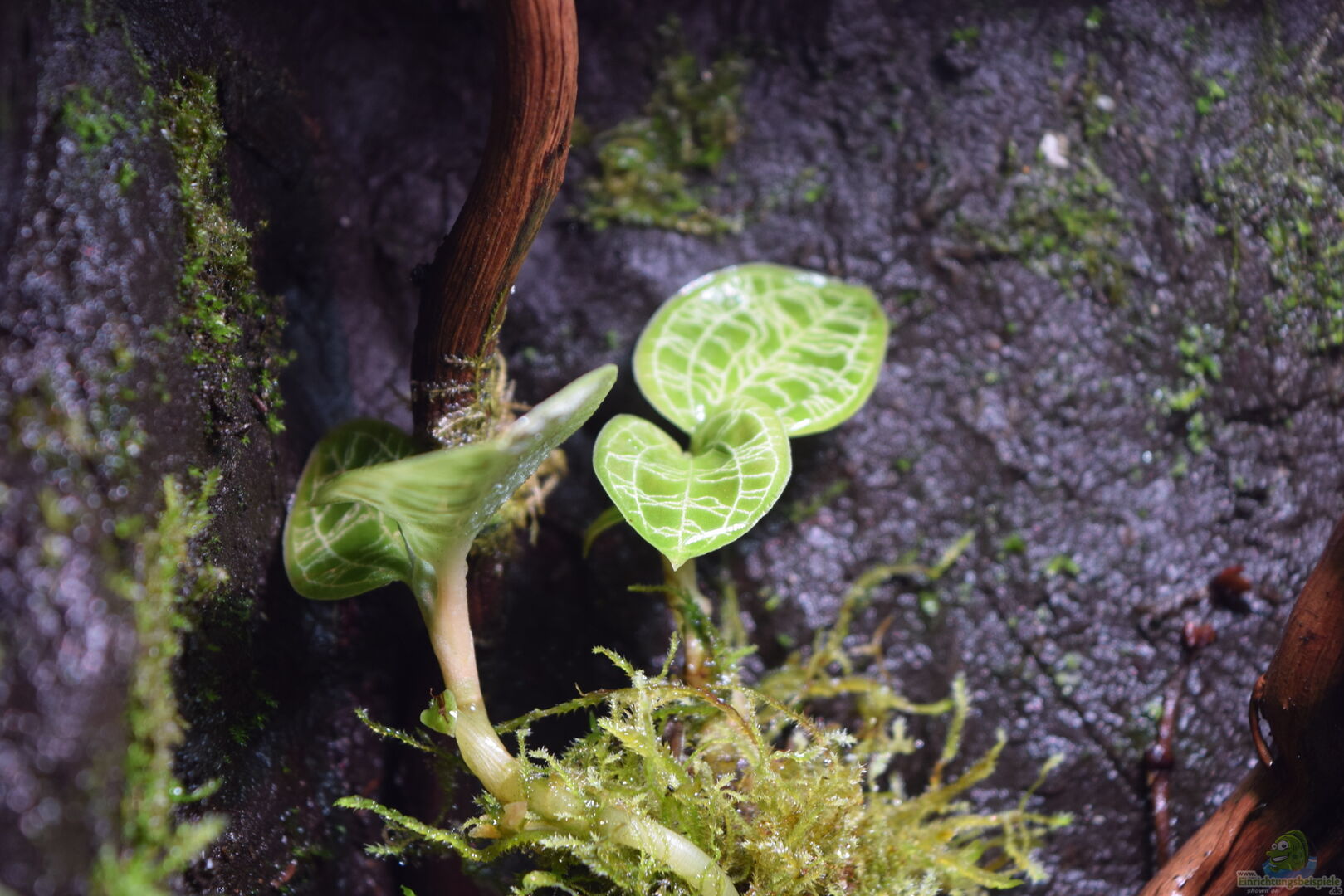 Ranken: Marcgravia umbellata, Ficus spec. Borneo, Ficus quercifolia, Pyrrosia nummularifolia, Rhapidophora hayi Bromelien: Neoreglia Akeso, Neoregelia liliputiana, Neoregelia Atlantis Farne und Bodendecker: Taxiphyllum Spiky, Hydrocotyle tripartia Mini, Begonia prismatocarpa, Ophiopogon japonicum Orchideen: Macodes petola