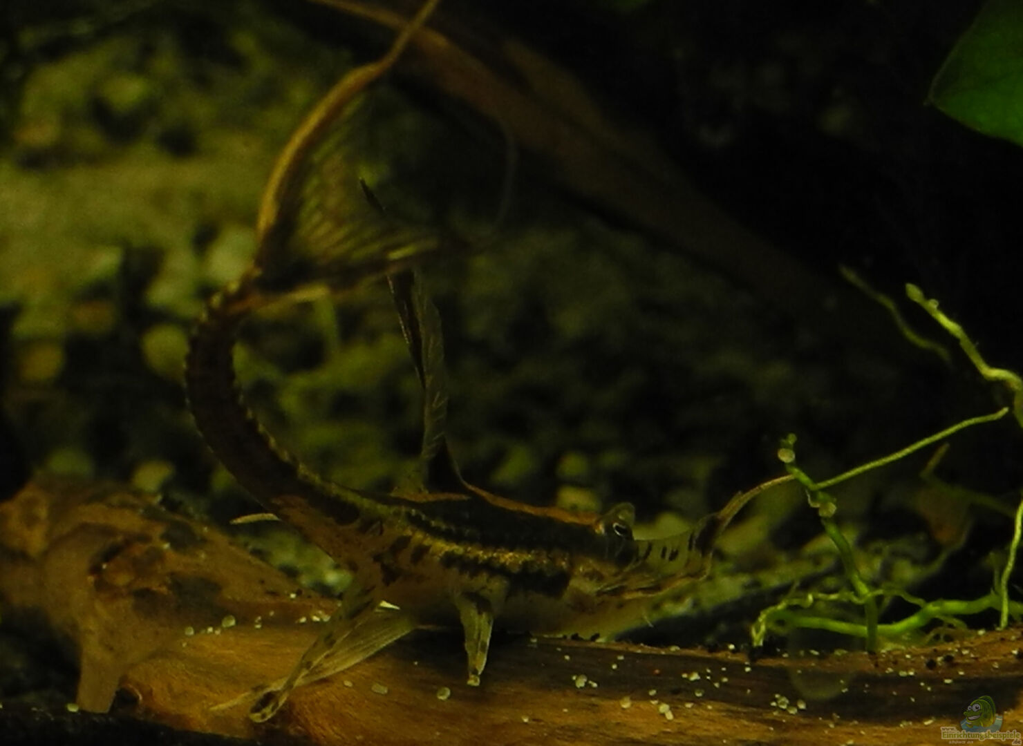 - 2 Skalare (Paar) / Pterophyllum scalare (Die Tiere stammen aus dem Zoohandel und sind daher vermutlich ziemlich überzüchtet. Allerdings haben sie eine rudimentär natürliche Farbe und einen guten Körperbau. Nur mag das Weibchen nicht so recht wachsen.) - 13 Metallpanzerwelse / Corydoras aeneus - 3 junge Goldbartwelse / Sturisoma festivum - viele Blasenschnecken - und auch viele Turmdeckelschnecken - 7 bis 10 Redfiregarnelen (diese stammen aus dem Erstbesatz und konnten sich trotz [...]