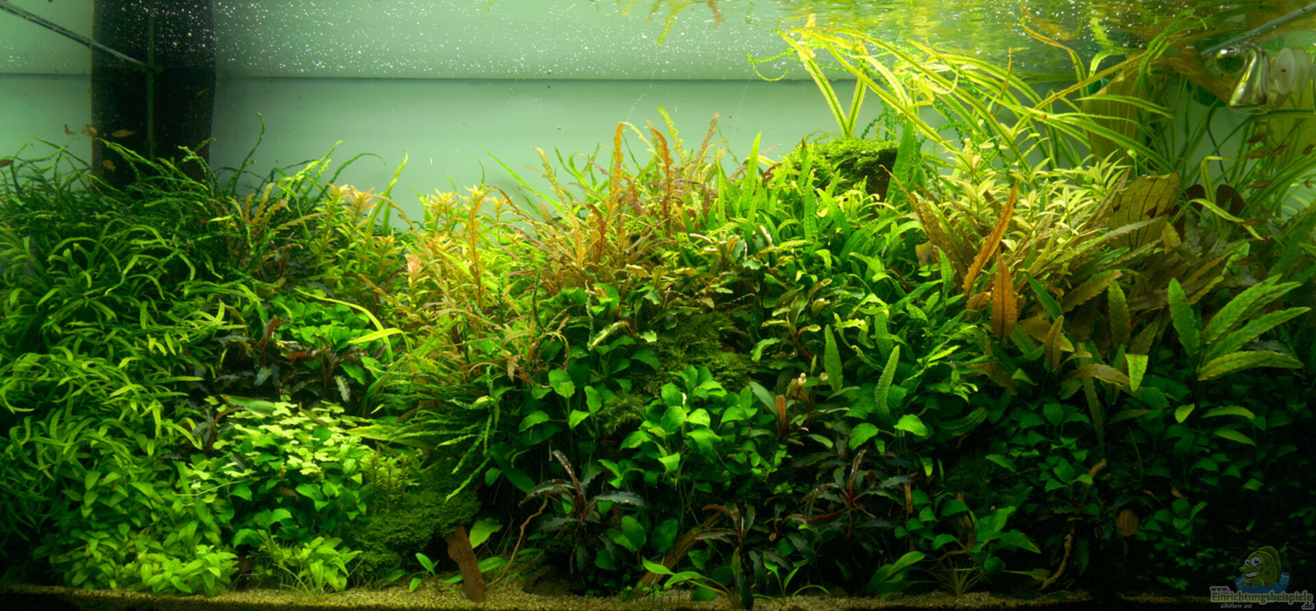 Das Aquarium ist vor allem ein Pflanzenbecken ohne gro??e Besonderheiten. Das Becken selbst ist ein über 15 Jahre altes Juwel-Standardbecken mit Längsstreben. An der Rückwand wurde eine selbstklebende Milchglasfolie aus dem Baumarkt angebracht.