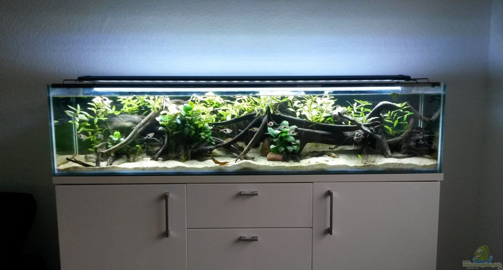 Wieder einmal handelt es sich bei dem Becken um eine Sonderanfertigung, die diesmal passend zum Sideboard gefertigt wurde. Hersteller ist die Firma Aquarienbau Voigt in Werneuchen bei Berlin. Das Becken wurde aus 8mm starkem Floatglas gefertigt und mit transparentem Silikon geklebt. Passgenau dazu habe ich mir eine dreiteilige Glasabdeckung von der Fa. Voigt anfertigen lassen, welche in zwei Kunststoff-E-Profilen auf der gesamten Beckenlänge verschiebbar ist. Als zusätzlichen Service wurden mir [...]