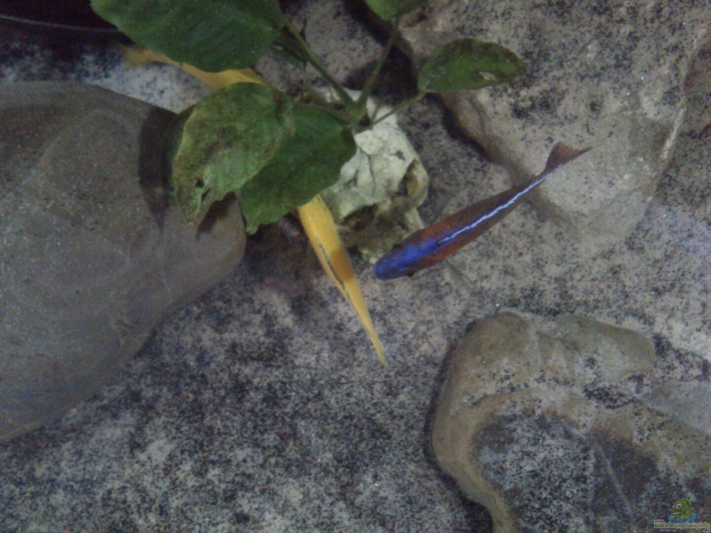 1/2 Sciaenochromis fryeri 2/4 Placidochromis electra 1/1 Aulonacara baenschi benga 1/1 Aulonacara hansbaenschi redflush 1/2 Copadichromis borley "kadango" 2/4 Labidochromis caeruleus "yellow" 4 Synodontis petricola, Geschlechter unbekannt Nachwuchs der Aulonacara werden, sofern vorhanden, nicht in Umlauf kommen, die Möglichkeit von Hybriden ist aufgrund des Besatzes ja gegeben. Bisher hat es aber noch kein Jungfisch geschafft durchzukommen.