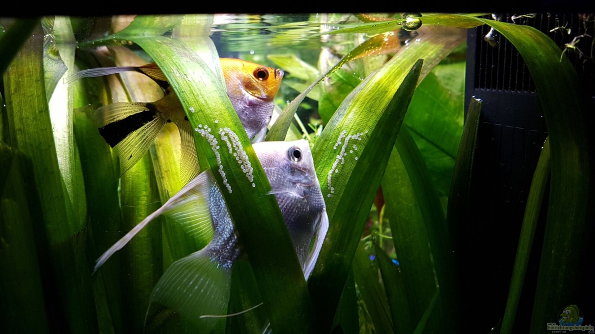 Schwarzer Phantomsamler, Hyphessobrycon megalopterus 3xM 12xW Gelber Kongosalmler, Alestopetersius caudalis 2xM 3xW Segelflosser, Pterophyllum scalare 5x Kakadu Buntbarsch, Apistogramma cacatuoides 2xM 2xW + Nachwuchs Neonsalmler 50x Guppy 3xM 3xW + Nachwuchs Siamesische Rüsselbarbe 6x Bolivianischer Schmetterlingsbuntbarsch 2x Fadenfisch, 1xM 2xW Geweihschnecke, Clithon sp. 4x Khanschnecke, Theodoxus fluviatilis 4x Der Versuch mit den Neons hat geklappt und die Skalare [...]