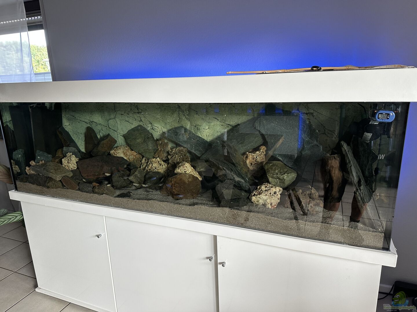 Beleuchtung : 2 T8 Röhren, die vordere Röhre ist eine Aqua-Glo der Firma Hagen.Die hintere Röhre ebenfalls.Beide Röhren sind mit Alufolie abgedunkelt und zum Teil mit blauer und grüner Folie umwickelt.Beide Röhren haben 36 watt. Aquarium: 12mm Sicherheitsverglasung sowie Verklebung. Bodenbereich 2 Bohrungen für Pumpensystem. Bodenplatte habe ich eine 20mm Styrodurplatte eingelegt für den Steinaufbau Da wir gerade ein Haus gekauft haben, wollten wir es dem Wohnzimmer anpassen. Wei?? [...]