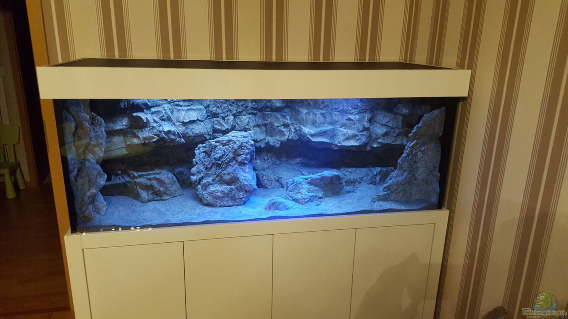 Die Aquariumkombination ist von der Firma Aquariumbau Friedeberg ATD.
