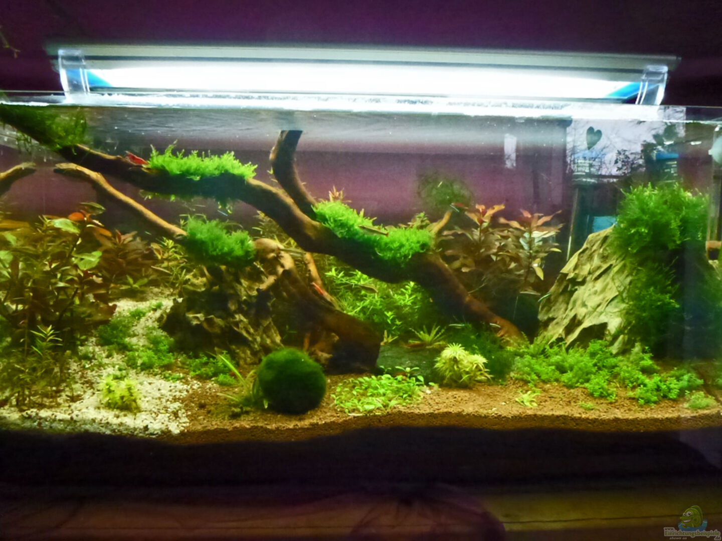 Ich habe mich bei meinem 3. Garnelenbecken für ein 60er Glas entschieden, welches ich als offenes Becken betreibe.