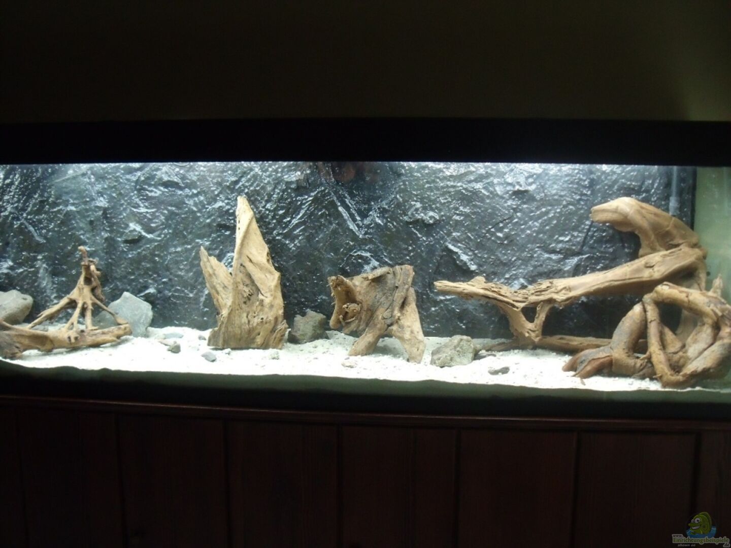 Becken sto??verklebt aus 15 mm Glas. Kiesblende mit integrierter Schaumstoffmatte Verklebte Abdeckung mit 3 x 4 PVC-Abdeckung mit integrierten Lichtbalken. Gesamtgewicht des leeren Beckens 380 kg. Unterschrank Ma??anfertigung vom Schreiner. Verschiedene Holzarten im kolonialstil gebeizt. Massivholzfichtenrahmen mit Verstrebung. 10 Türen, Technikabteil, Futter, Wassertests, Technikschubladen. Versteckte Wandblende mit Schlauch und Kabeldurchführung. Rückwand Eigenbau aus Styropor und Fliesenkleber. [...]