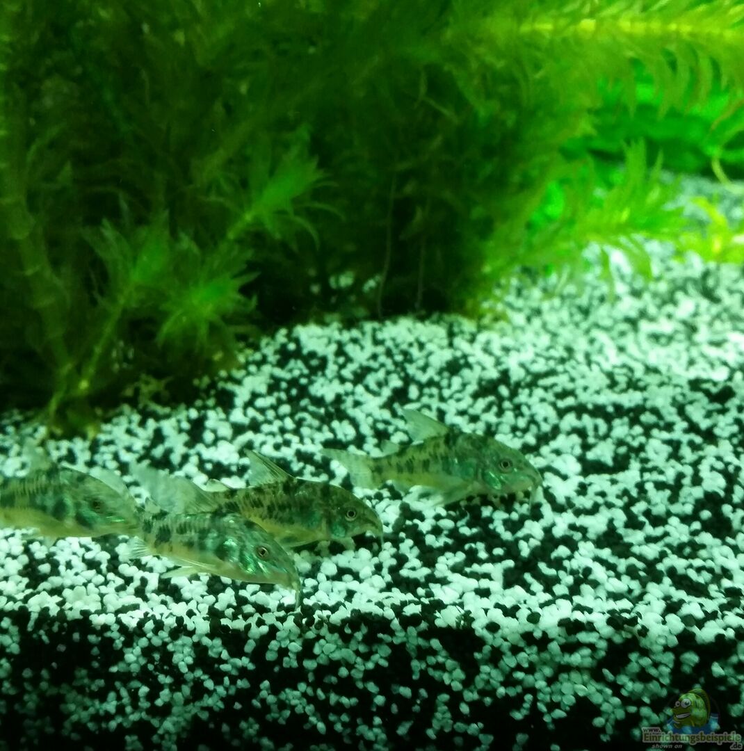 12 Marmorpanzerwelze 24 Neonsalmler 5 schwarze Phantomsalmler 6 Amanogarnelen 1 Antrazitschnecke Die Beckenma??e waren eine sehr gro??e Herausvorderung einen artgerechten und optisch ansprechenden Fischbesatz herauszusuchen. Es ist wirklich schön das Verhalten der Neonsalmler zu beobachten. Der Besatz ist somit vollständig und harmoniert erstaunlich gut miteinander.