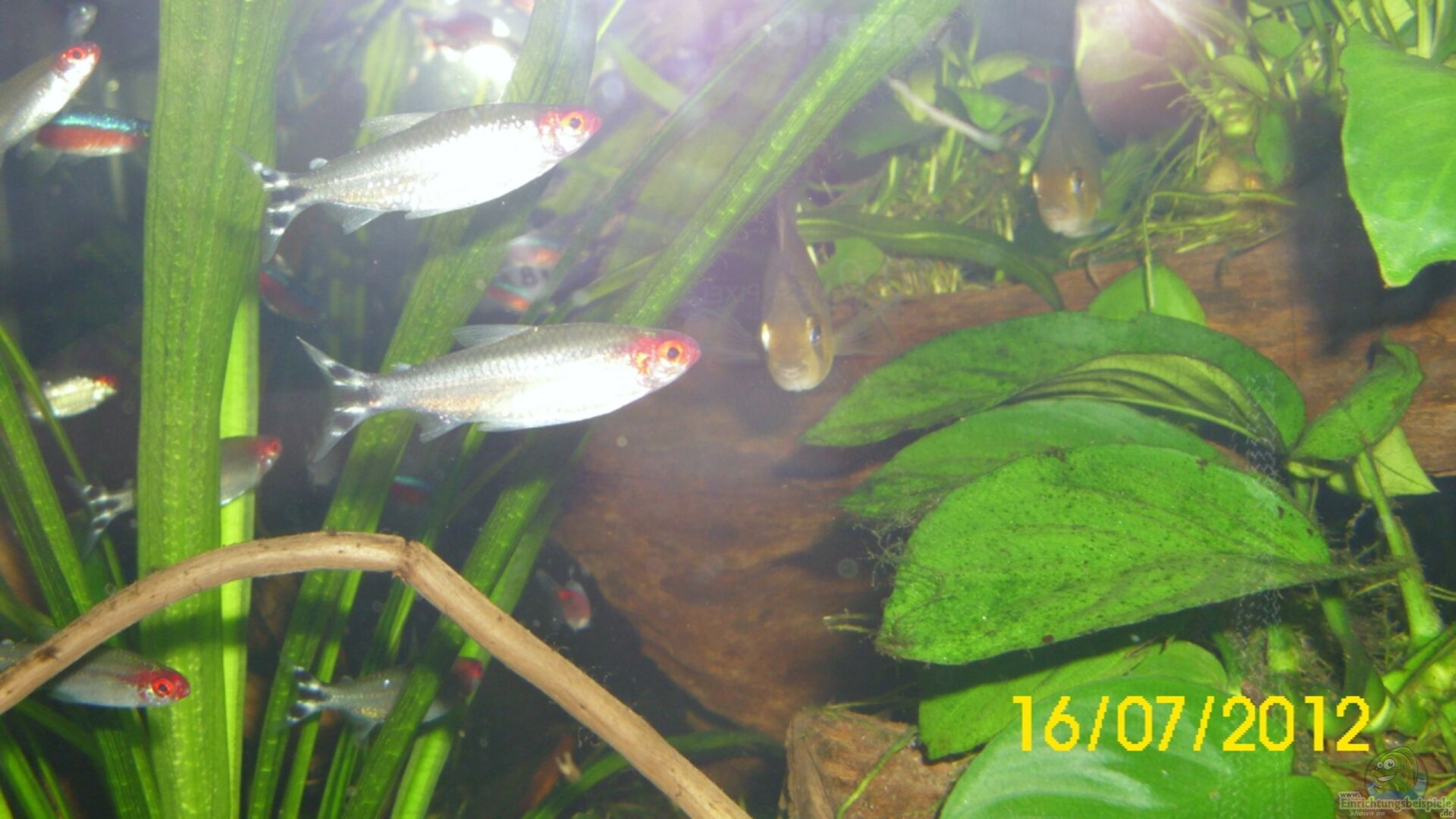 35x Roter Neon / Kardinaltetra Paracheirodon axelrodi (SCHULTZ, 1956) Dieser prächtige Salmler gilt als einer der bekanntesten Zierfische überhaupt. Der gesamte Unterkörper ist, vom unteren Rand der Iris beginnend, einschlie??lich des Schwanzstieles blutrot gefärbt. Dann folgt nach oben ein fluoreszierendes blaues Band und schlie??lich der rotbraune Rücken. Im Bereich des Unterbauchs zeigt sich eine schmale wei??e Zone. Das natürliche Verbreitungsgebiet dieser Schwarmfische erstreckt [...]
