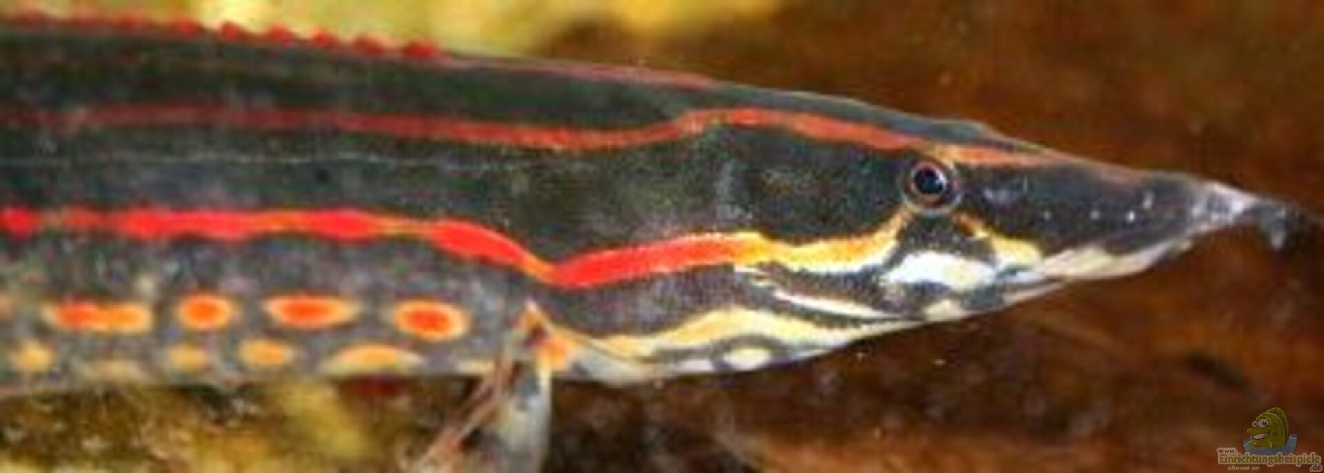 Hier findest du alle wichtigen Infos und viele Beispiele für die Einrichtung eines Aquariums für Mastacembelus erythrotaenia (Feuer-Stachelaal).