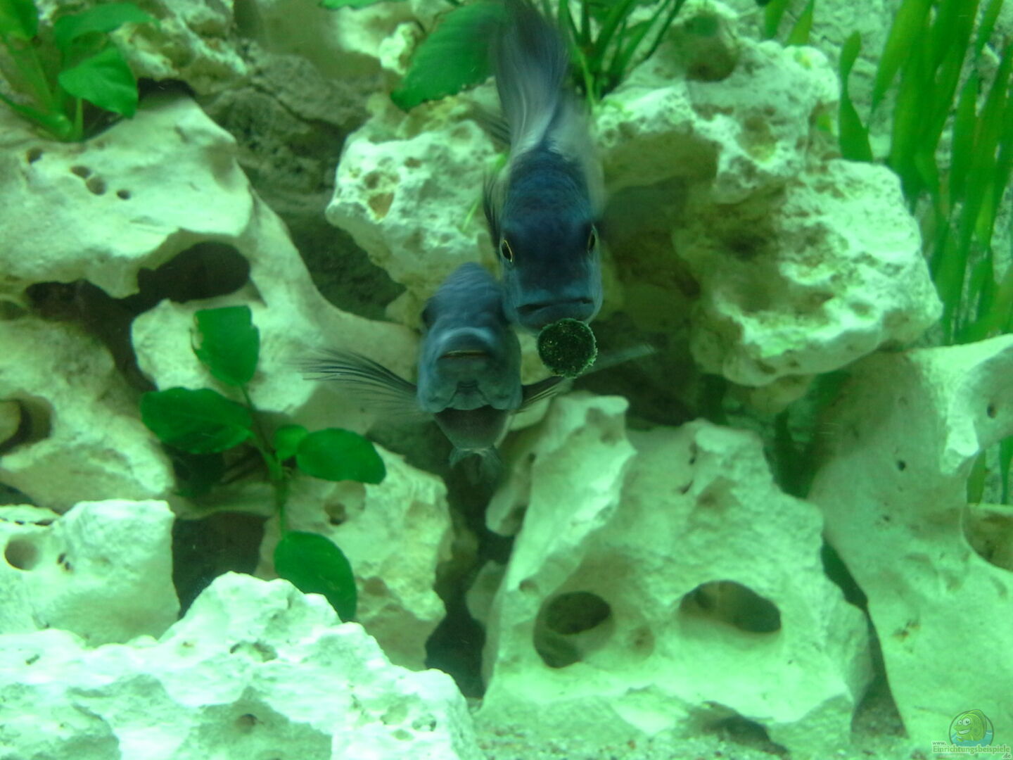 7 Tropheus Duboisi Maswa (2m/5w noch nicht ganz sicher, gerade geschlechtsreif) 2 Neolamprologus Leleupi Leleupi orange (1m/1w auch noch nicht sicher) 2 Altolamprologus Calvus black (1m/1w auch noch nicht sicher) :) 1 Ancistrus spec. (1m) 3 Crossocheilus siamensis