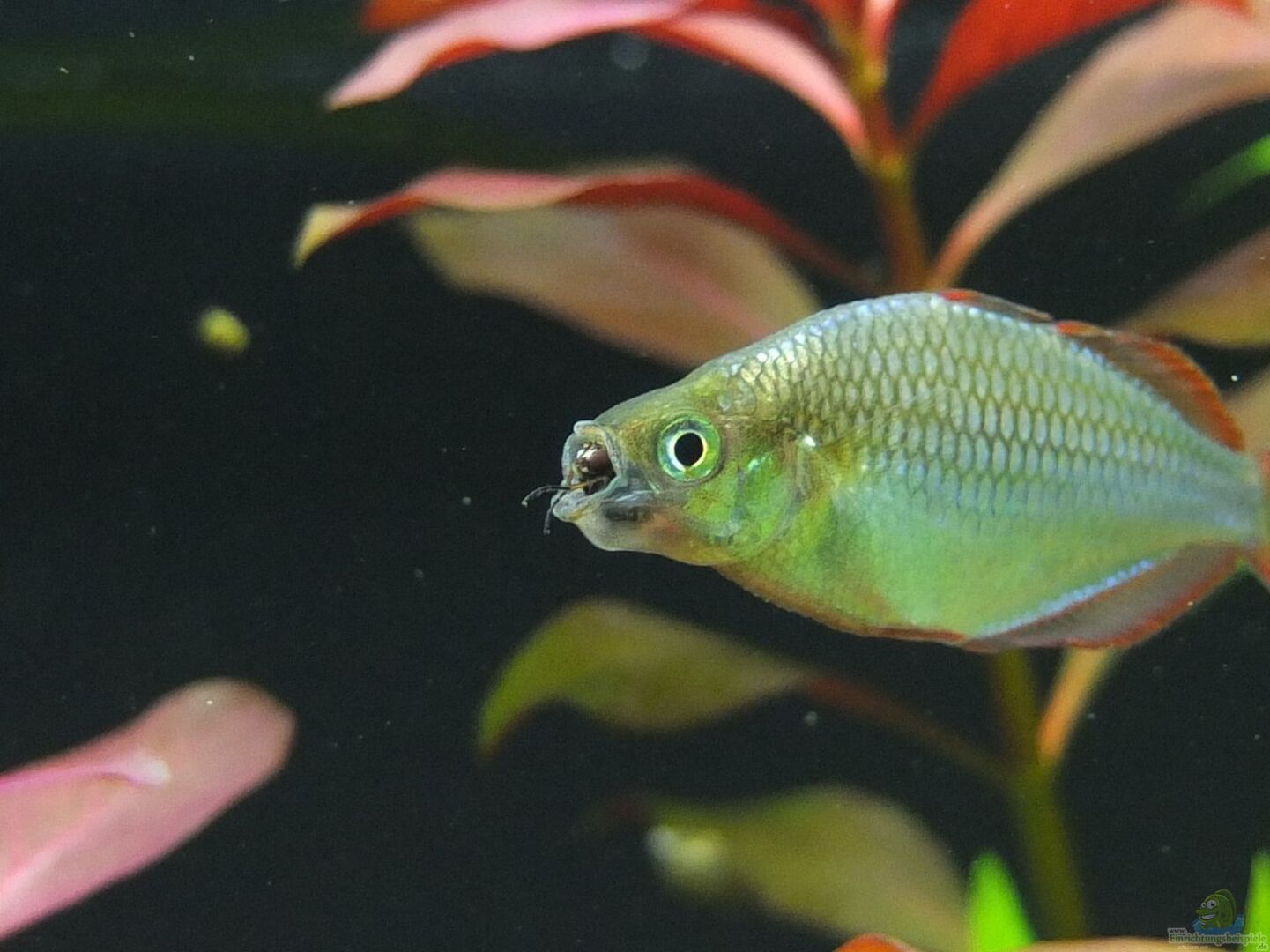 1. 12 Melanotaenia praecox - Diamantregenbogenfisch (6M/6W) Weitere Namen lauten Zwerg-Neon-Regenbogenfisch oder englisch Dwarf Rainbowfish Der Name Melanotaenia kommt aus dem lateinischen bzw. griechischen Wortschatz und bedeutet schwarze Binde oder Streifen. Es verweist auf den häufig in dieser Familie anzutreffenden schwarzen Längsstreifen. Das Wort praecox bezieht sich darauf, da?? diese Art sehr früh einen hohen Rücken entwickelt, wie [...]