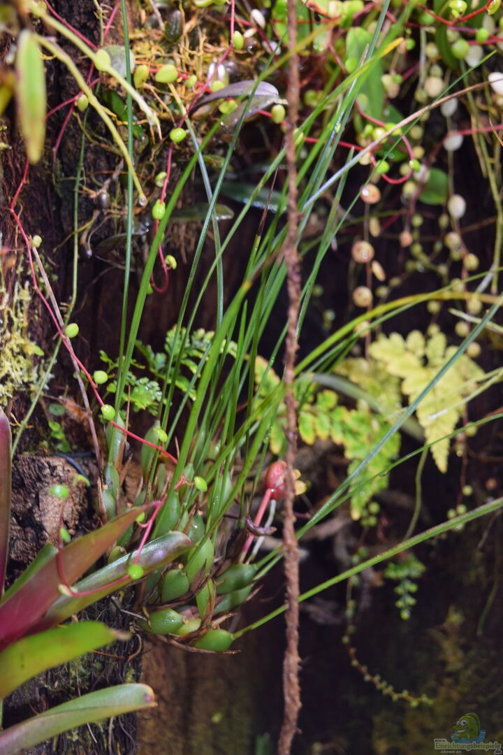 Submerse Pflanzen: Als einzige Pflanze im Wasserteil hab ich mir Vallisneria nana ausgesucht, die 1. mit sehr wenig Licht zurecht kommt und willig Ausläufer bildet, was gewünscht ist. Als Dünger verwende ich Iron Bottom von ADA. Das sind vor allem Eisen haltige Sticks, die in den Sand nahe den Pflanzen gesteckt werden. Mal gucken ob die Ihr Geld wert sind. Ich wollte eben auch mal was von ADA haben ;) Jetzt doch noch neu hinzugekommen ist Ceratophyllum demersum, welche immer wieder ausgelichtet [...]