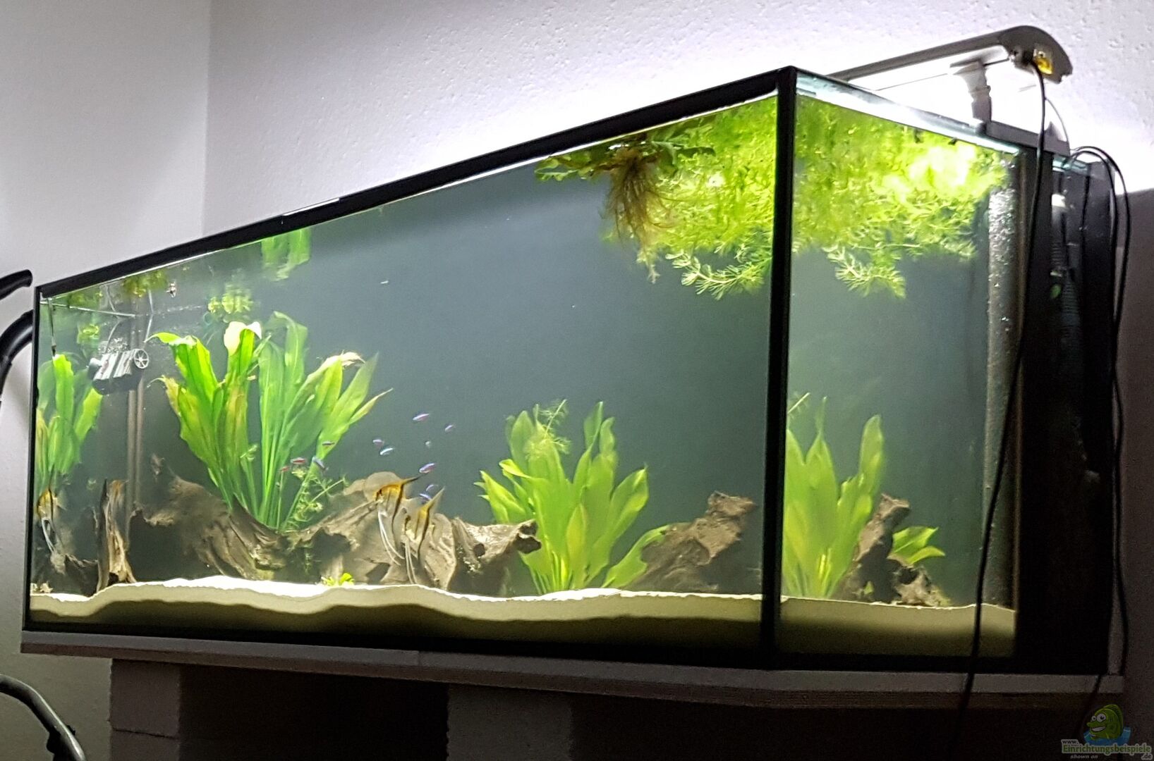 - Eine Pumpe J*L ProFlow U800 (900l/h) mit Diffusor für mehr Wasserbewegung und Sauerstoffanreicherung. - T***a Heizstab 300W