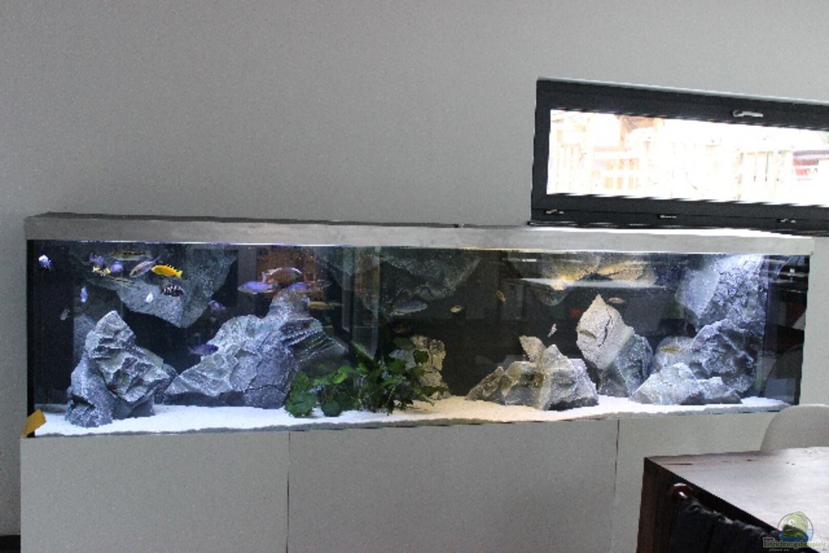 Becken gerade im Aufbau, Background von Aquadecor bereits eingeklebt . Weitere Infos folgen So am Mittwoch kommt der Unterschrank vom Schlosser 40x40mm Stahl , musste heute 6 Löcher a 55mm durch meinen Estrich bohren da das Becken auf die Bodenplatte gestellt wird . Problem Fu??bodenheizung aber hat geklappt. Unterschrank wird mit hochglanzlackierten Fronten verkleidet. Abdeckung ist aus Alu und wird auch lackiert. Felsen können fast alle als Versteck genutzt werden da man sie hinter [...]