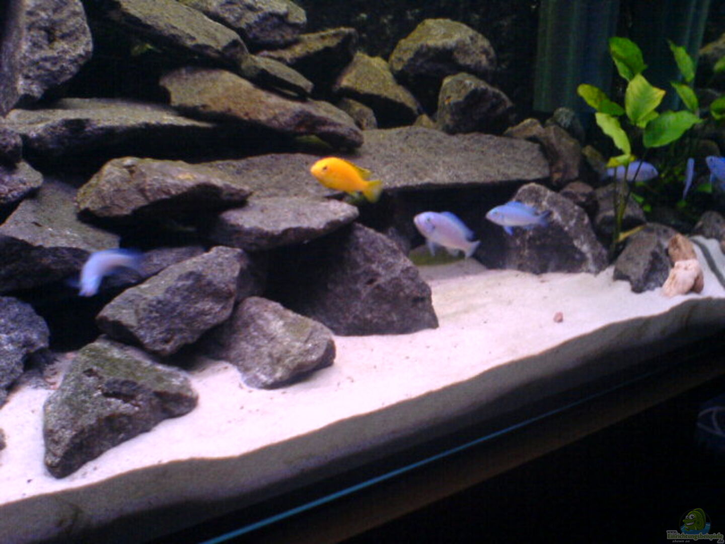 2/2 Labidochromis caeruleus + Jungtiere 1/4 Metriaclima callainos (Verhältnis noch nicht genau bestimmbar da Jungfische, könnte auch 2/3 sein. Wird später auf 1/3 o. 1/4 angepasst) -/1 Pseudotropheus pulpican + Jungtiere Turmdeckelschnecken