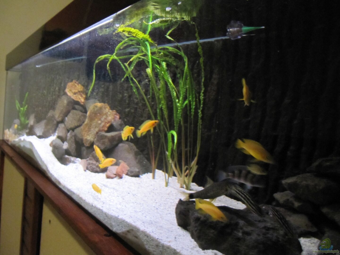 Die Steinaufbauten aus Mendiger-Basalt wurden natürlich bevor der Sand ins Becken gekommen ist aufgebaut, damit durch grabende Fische kein rutschen der Steinaufbauten verursacht wird!Es sind ca.65 kg Basaltsteine und zahlreiche ander Steine verwendet worden! Die Strukturrückwand von Juwel wurde ganz am Anfang an die Rückscheibe mit Silikon angeklebt um ein späteres aufsteigen zu vermeiden, da die platten einen sehr starken Auftrieb haben! In der linken Aquariumhälfte wurden ca. 120 [...]
