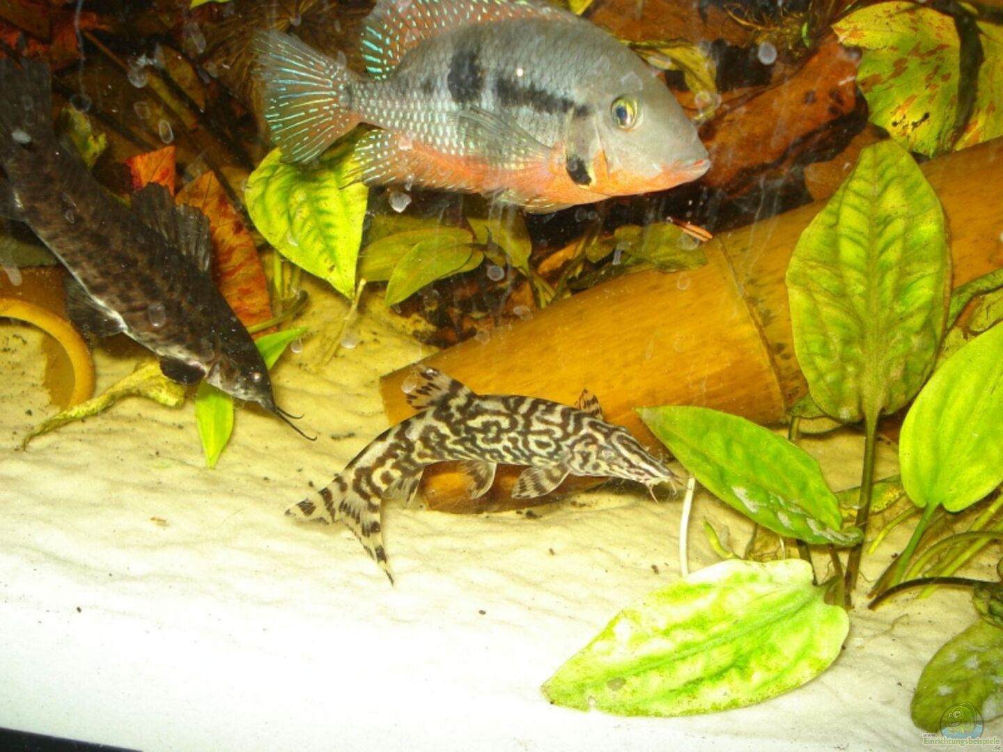 Barsche: Cichlasoma nigrofasciatum 1m/1w (Goldform) Cichlasoma nicaraguense 2m/3w Cichlasoma sajica 2m/2w Thorichthys meeki 1m/3w Welse: 6x Megalechis thorocata 3x Glyptoperichthys gibbiceps 14x Corydoras aenus 6x Corydoras wotroi L114 WF L77 Schmerlen (passen eigentlich nicht, sind aber nützlich): 3x Chromobotia macracanthus 1x Botia lohachata
