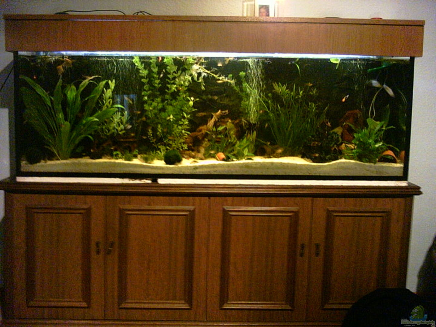 Selbst gebohrte Löcher in Lavasteine und Wurzel au??erdem hat das Aquarium eine 3D Rückwand die ganze Elektrik ist im Schrank verbaut Die Röhren sind einzeln einschaltbar