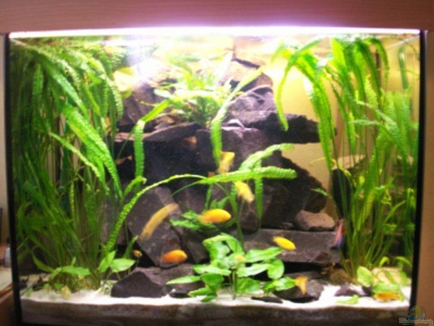 Ich habe mir mit diesem Aquarium einen gro??en Traum erfüllt. Schon mit 6 Jahen hatte ich ein kleines Anfängerbecken mit 54 l (60er Becken) und ab 14 Jahren ein etwas grö??eres mit 94 l (80er Becken). Aber dieses habe ich mir extra nach meinen vorstellungen anfertigen lassen. Meine Abdeckung habe ich mir zum ersten mal selbst gebaut. Habe hierzu einfache Spanplatten genommen, die Ich mit Acryllack von innen gut bestrichen und von au??en mit Holzfolie verkleidet habe.